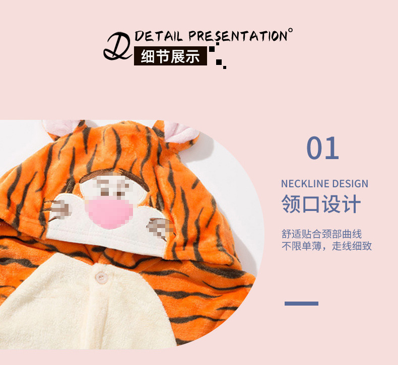 クロスボーダー子供フランネルパジャマかわいいフード付きホームウェア秋冬漫画かわいい動物ワンピースコスチューム