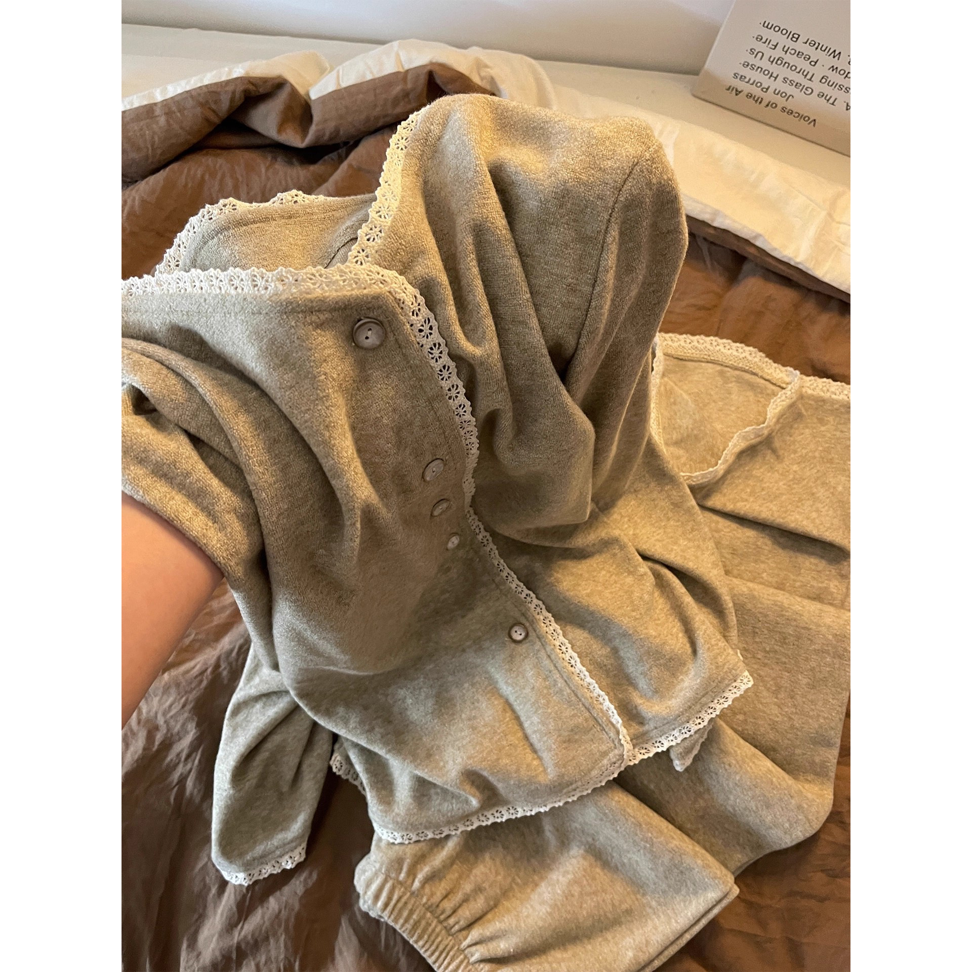 德绒睡衣女秋冬季长袖套装网红风大码蕾丝花边家居服高级感可外穿