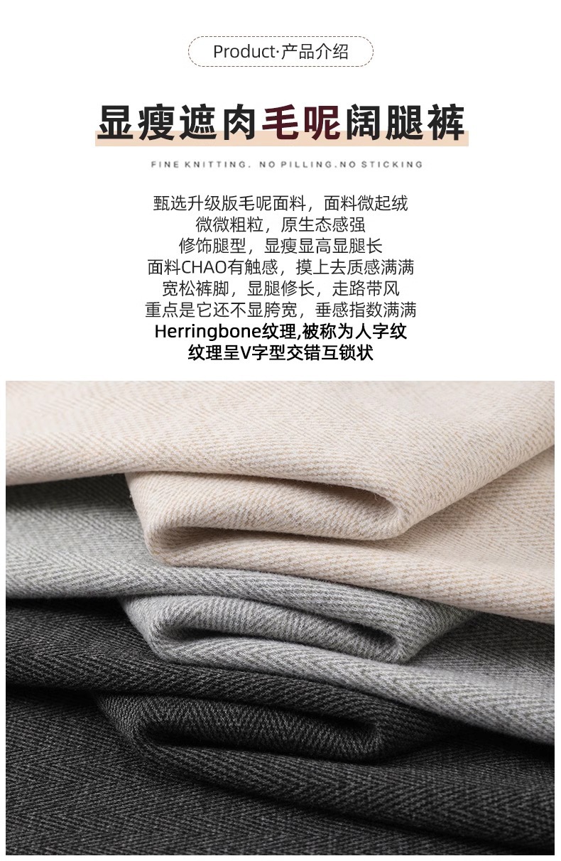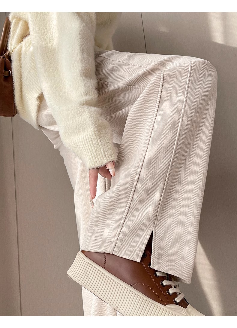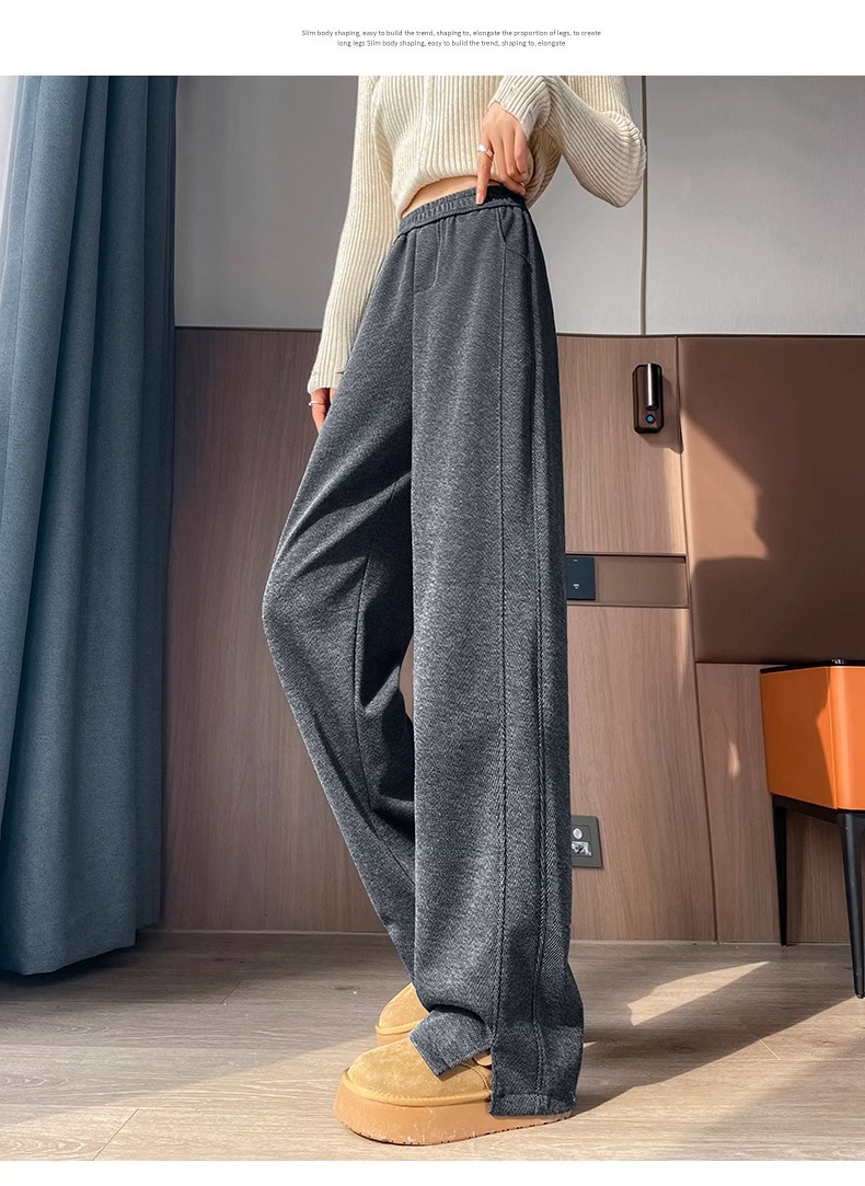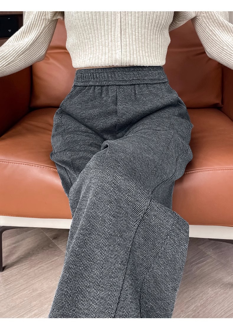 人の字の紋様のベルベットの広脚のズボンの女性の秋冬の2024の新型の毛はズボンのまっすぐな筒のウールの狭い版のバナナのズボンを開けます。