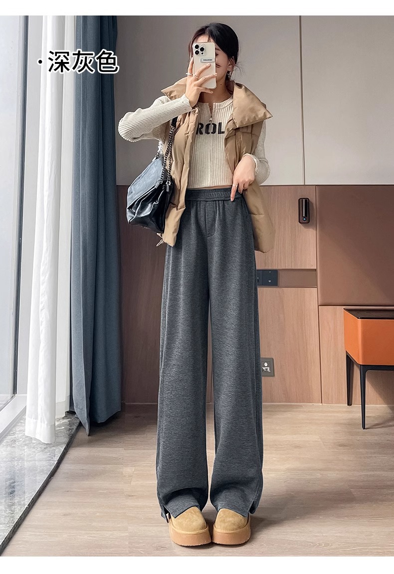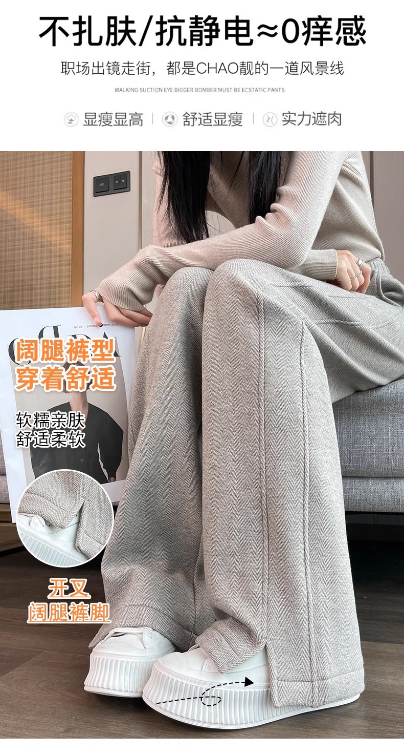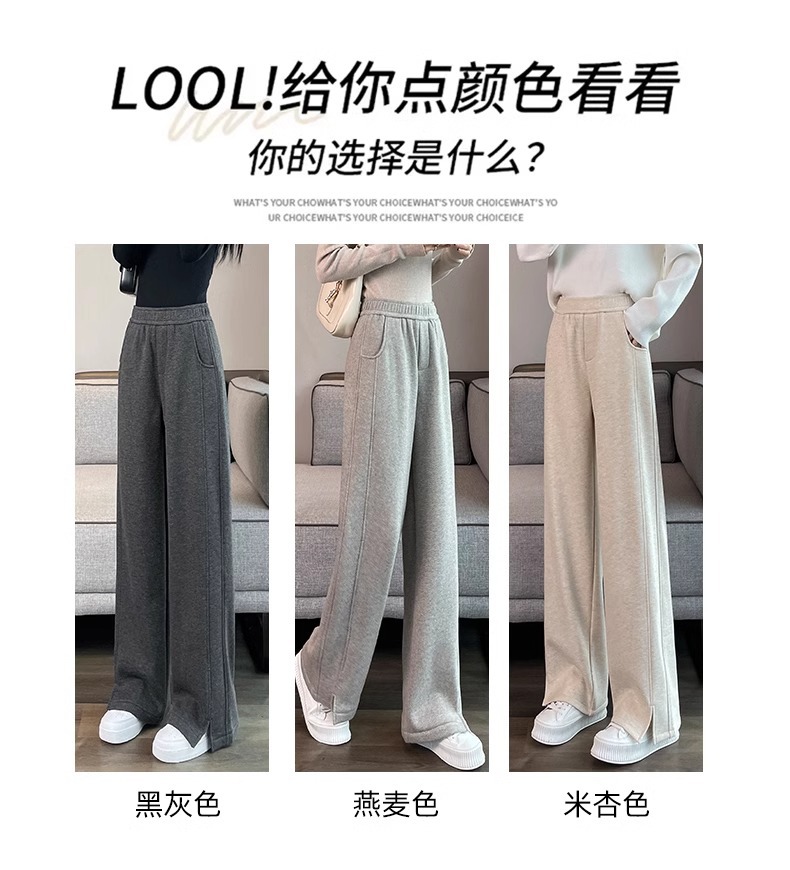 烏梅の紫色のスポーツのズボンの女性の春秋のベルベットの2025の新型のまっすぐな筒の狭い版の衛のズボンの高腰のバナナの広腿のズボン