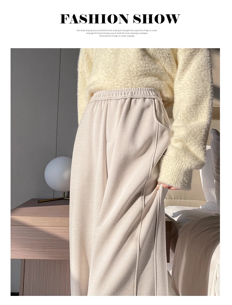 青いバナナのワイドパンツの女性は冬にカシミヤのズボンを厚くします。