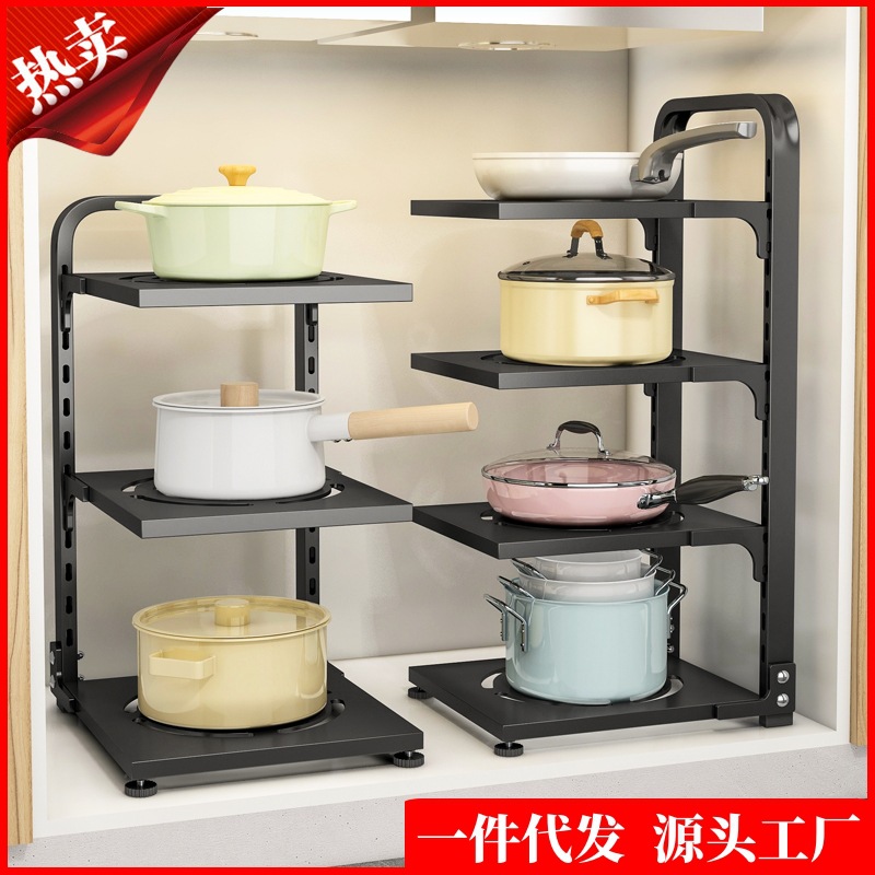 台所の下の水槽の物置棚の家庭用多層多機能の鍋の収納棚のかまどの食器棚は調整して鍋の棚を置くことができます。