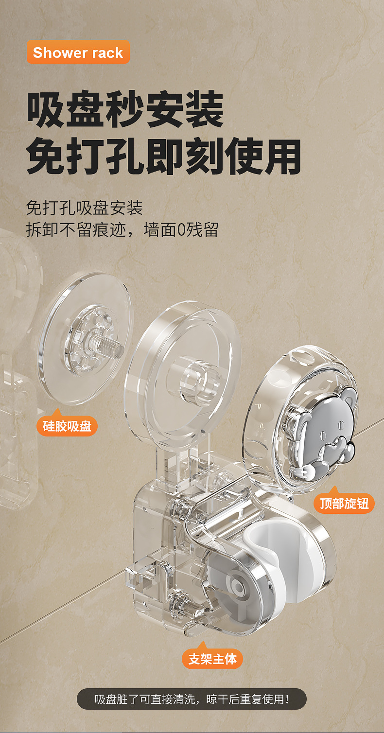 クロスボーダー固定シート穴なし吸盤式シャワーヘッドスタンド浴室壁掛け式シャワーアクセサリー