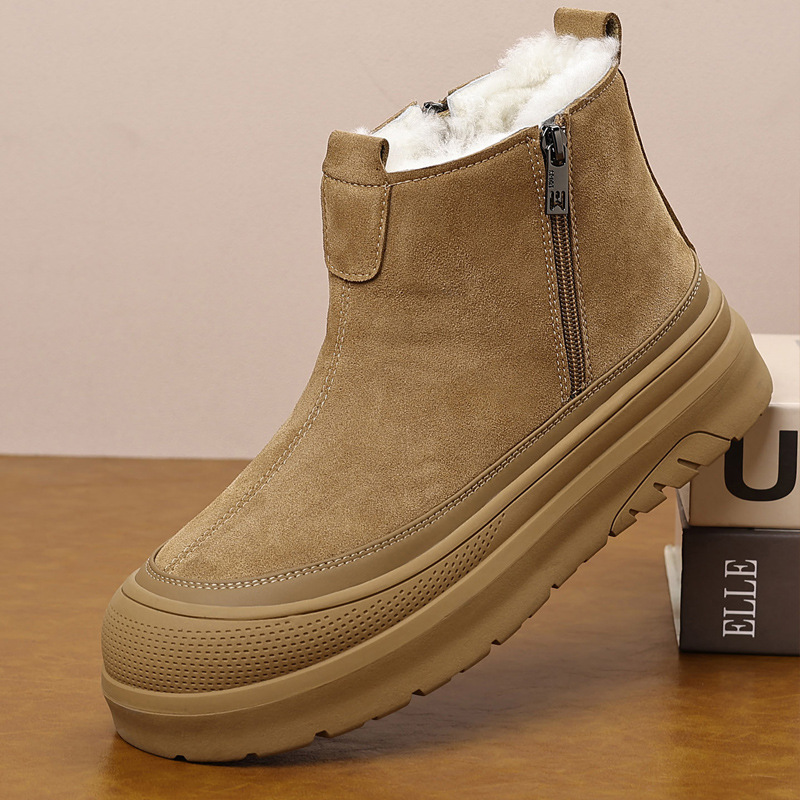 トップ層牛革冬男性綿靴真皮ウール保温カジュアルシューズ屋外厚い底ベルベット醜い靴男性靴