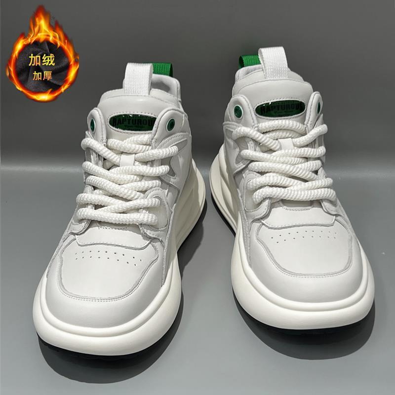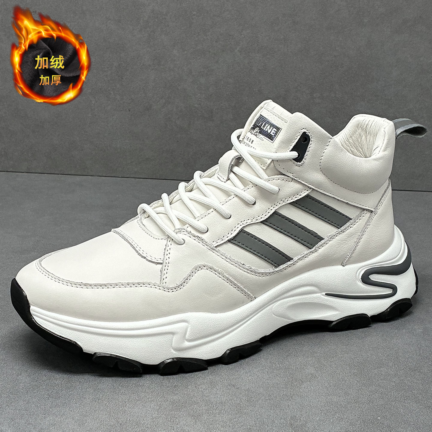 高帮男鞋秋冬季新款真皮休闲鞋厚底白色运动鞋加绒保暖二棉鞋子男