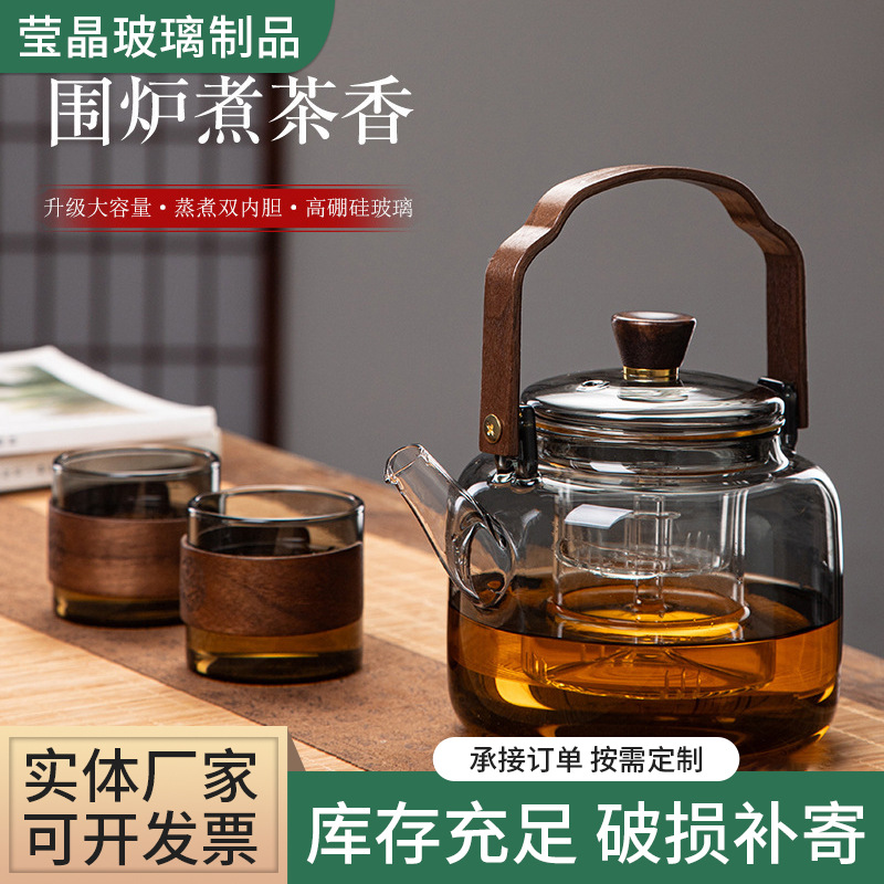 创意透明耐热玻璃提梁茶壶 家用过滤茶水分离蒸煮茶水壶茶具套装