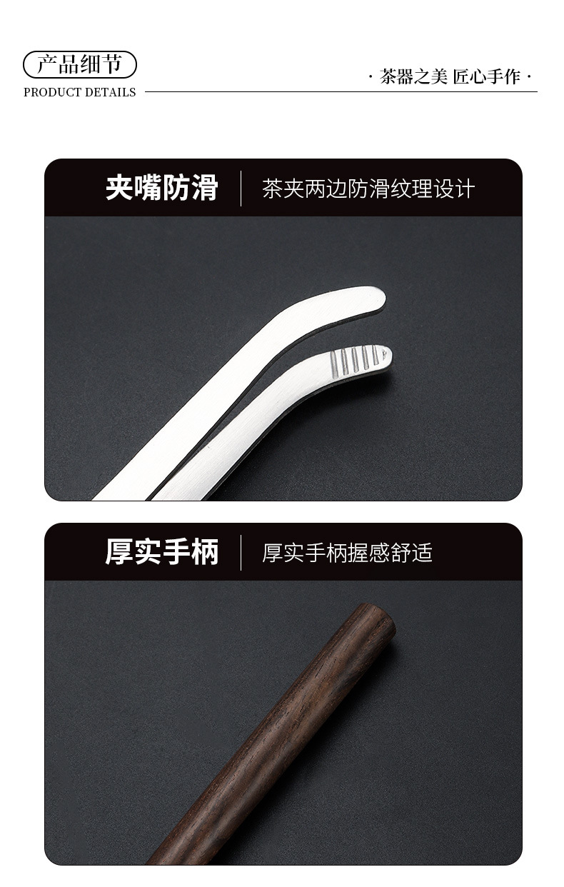 高端纯钛茶夹茶勺家用黑檀木轻奢功夫茶具配件茶杯夹镊子夹杯器