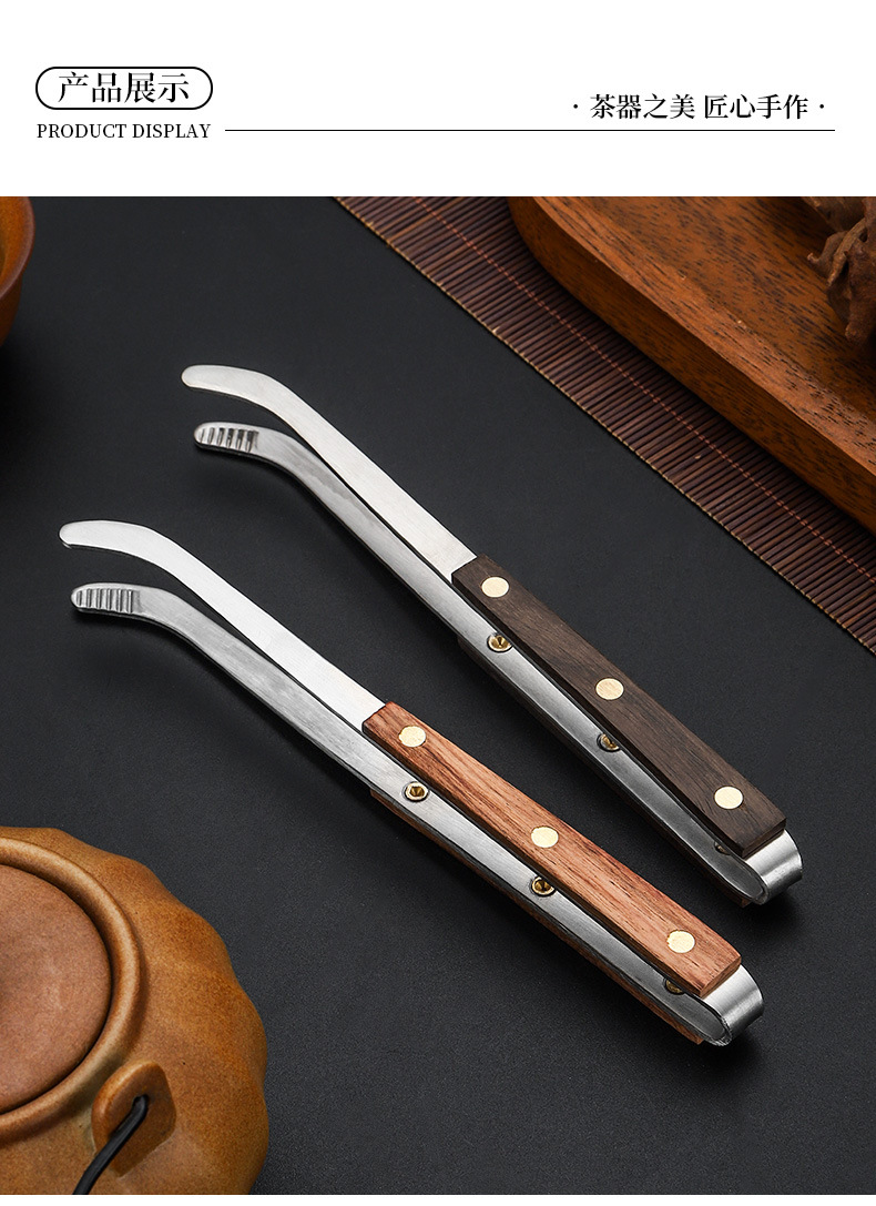 純銅茶杯クリップ、ステンレスクリップ、真鍮クリップ、木製純チタンピンセット、高級茶器アクセサリー卸売
