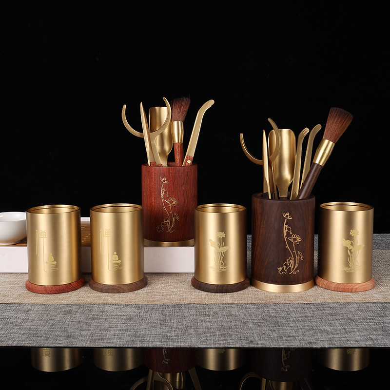 銅の木の茶は実木の純粋な黄銅を挟んで茶道の六君子の茶器の部品の大全の茶の刀のペンを結び付けてスプーンを挟んでお茶を入れます。
