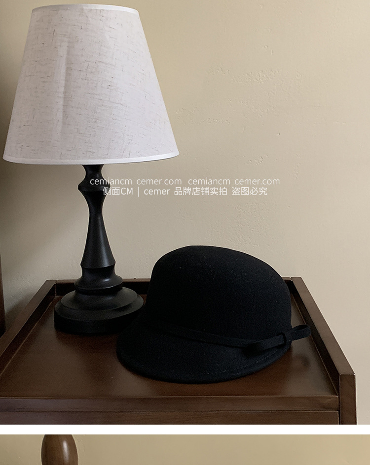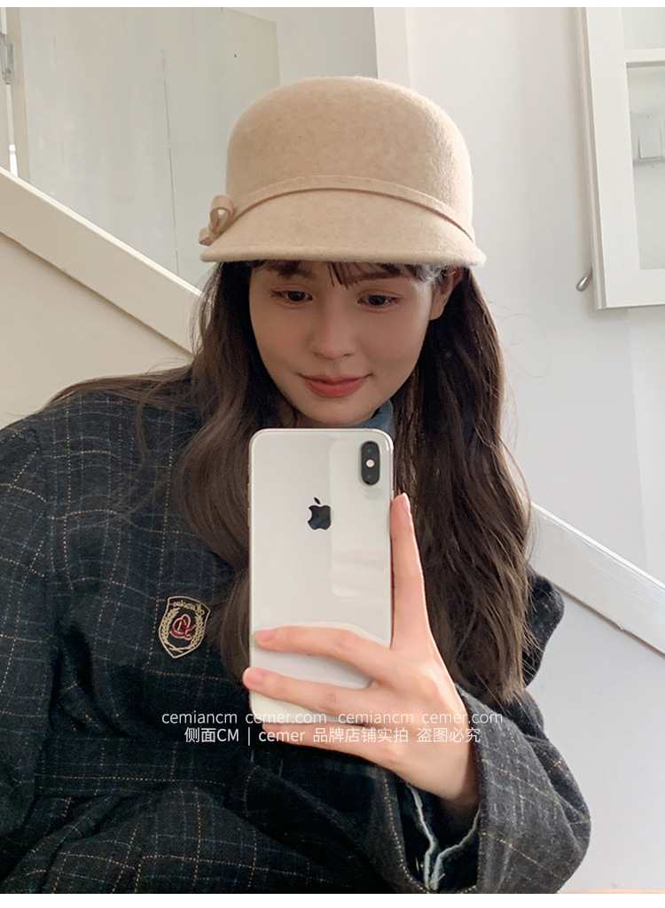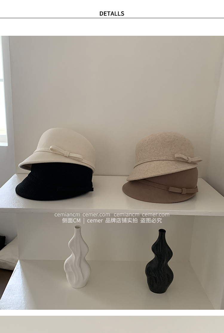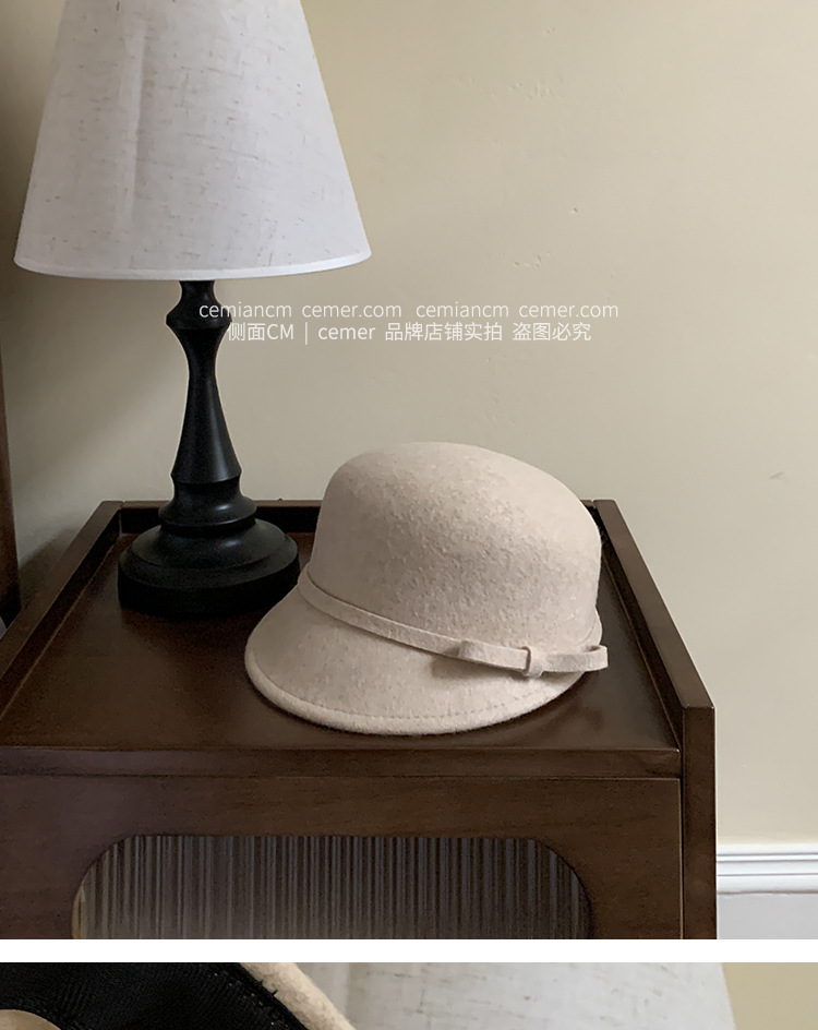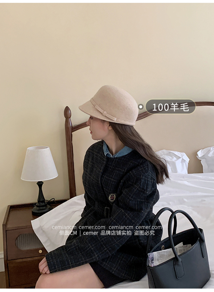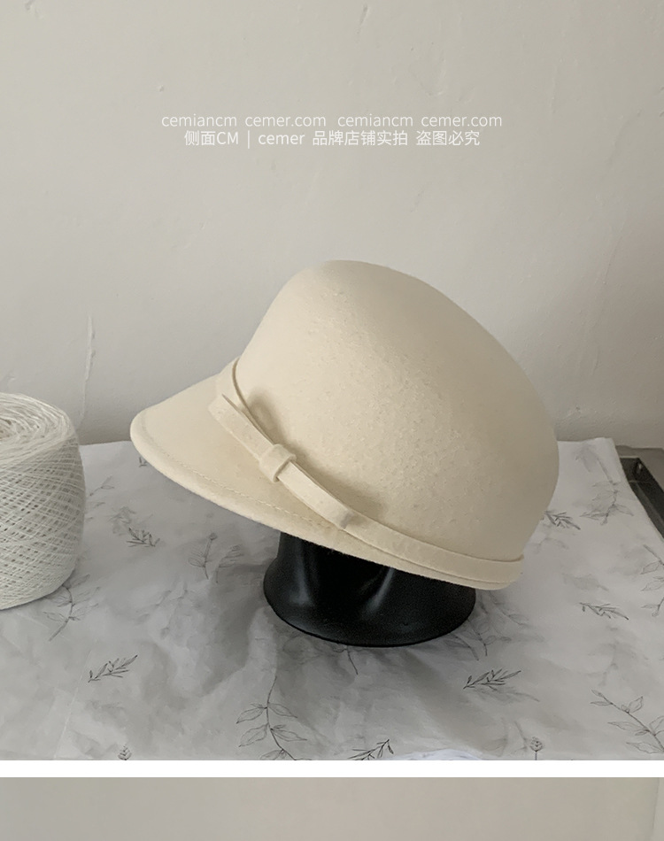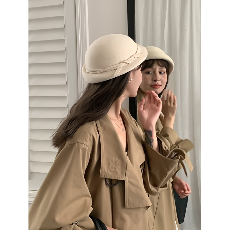 法式复古卷边羊毛礼帽女秋冬高级感细蝴蝶结渔夫帽千金风优雅盆帽