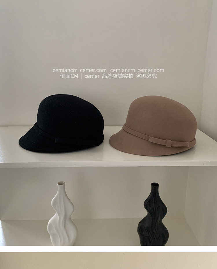サイド高级感ウールはベレー帽レディース秋冬新作フレンチレトロヘップバーンエレガントフェルトハット千金ハット