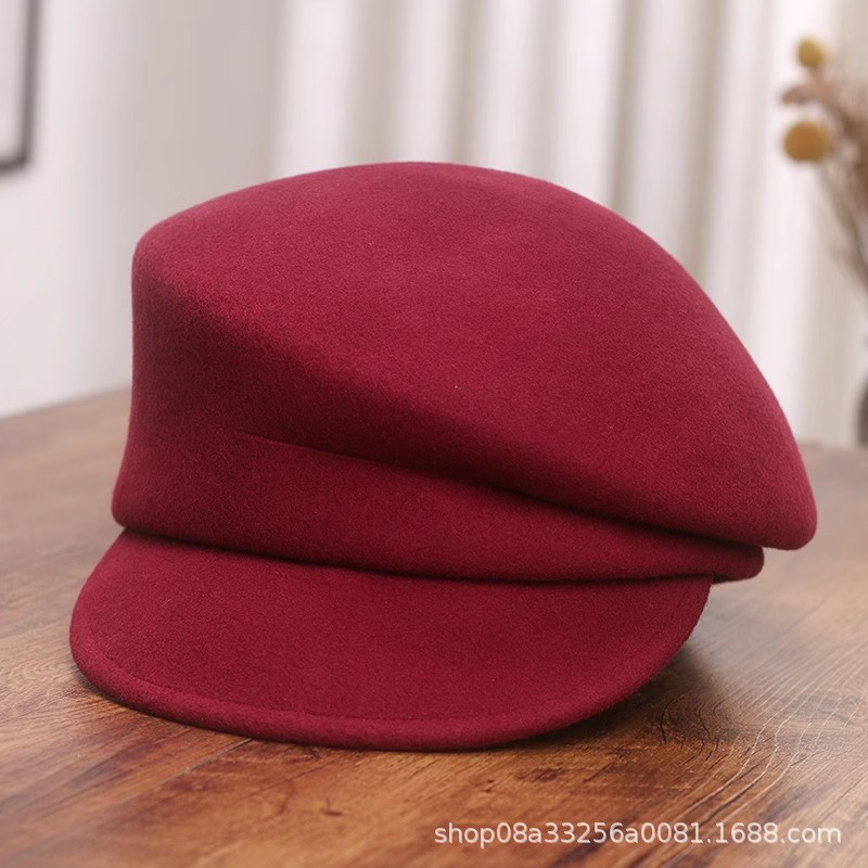 Feverは同じワインレッドのウールです。子供帽の女性秋冬八角帽子の画家ベレー帽のレトロな羊フェルト帽です。