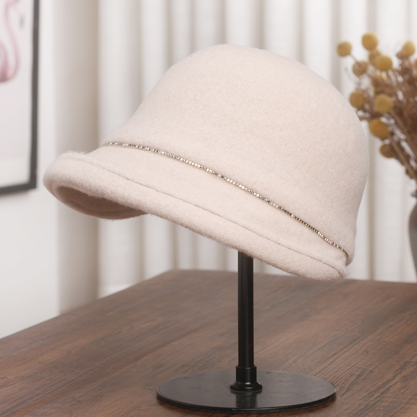 日系羊毛呢卷边渔夫帽女秋冬纯色百搭保暖盆帽显脸小气质卷边礼帽