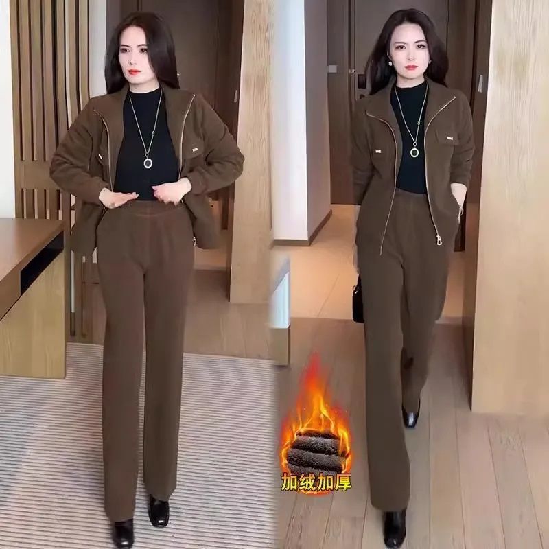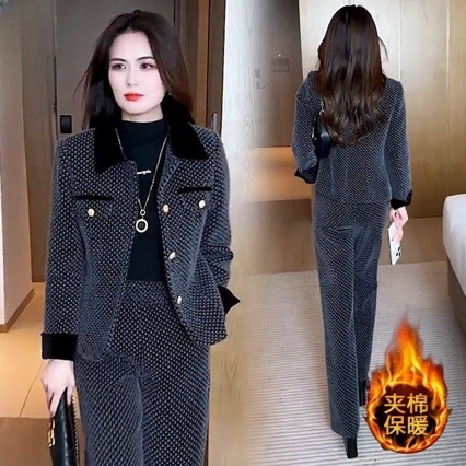 冬の新型ファッションセット2024韓国版のベルベットは、年齢を下げて痩せているカジュアルコートの上着を2点セットにしている