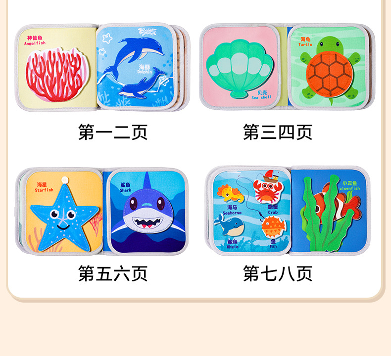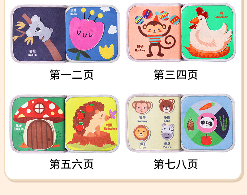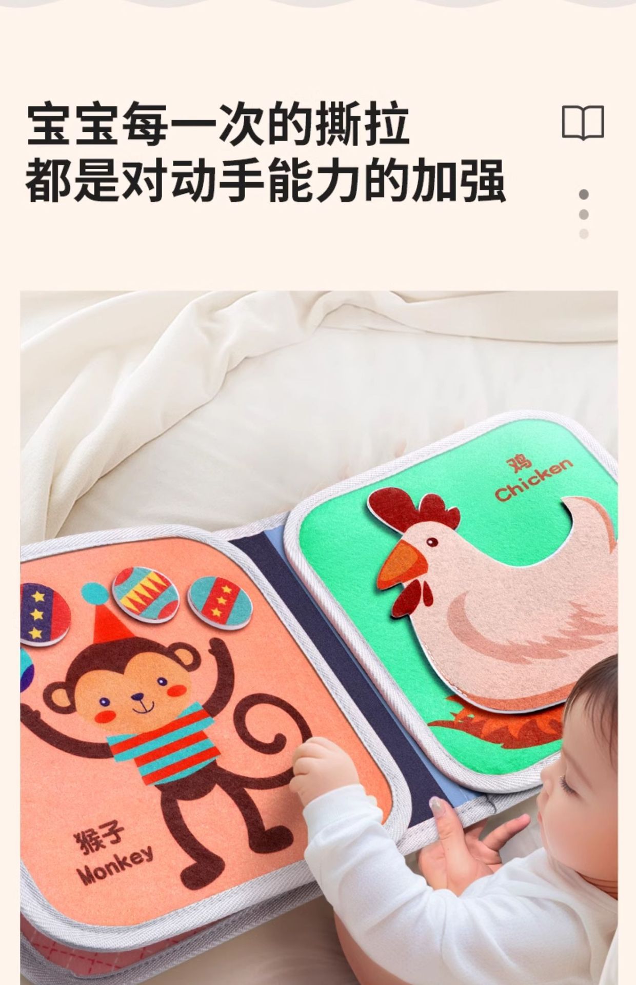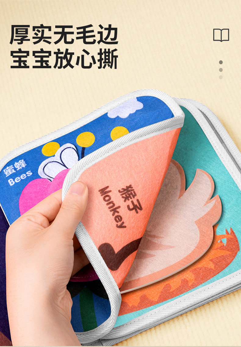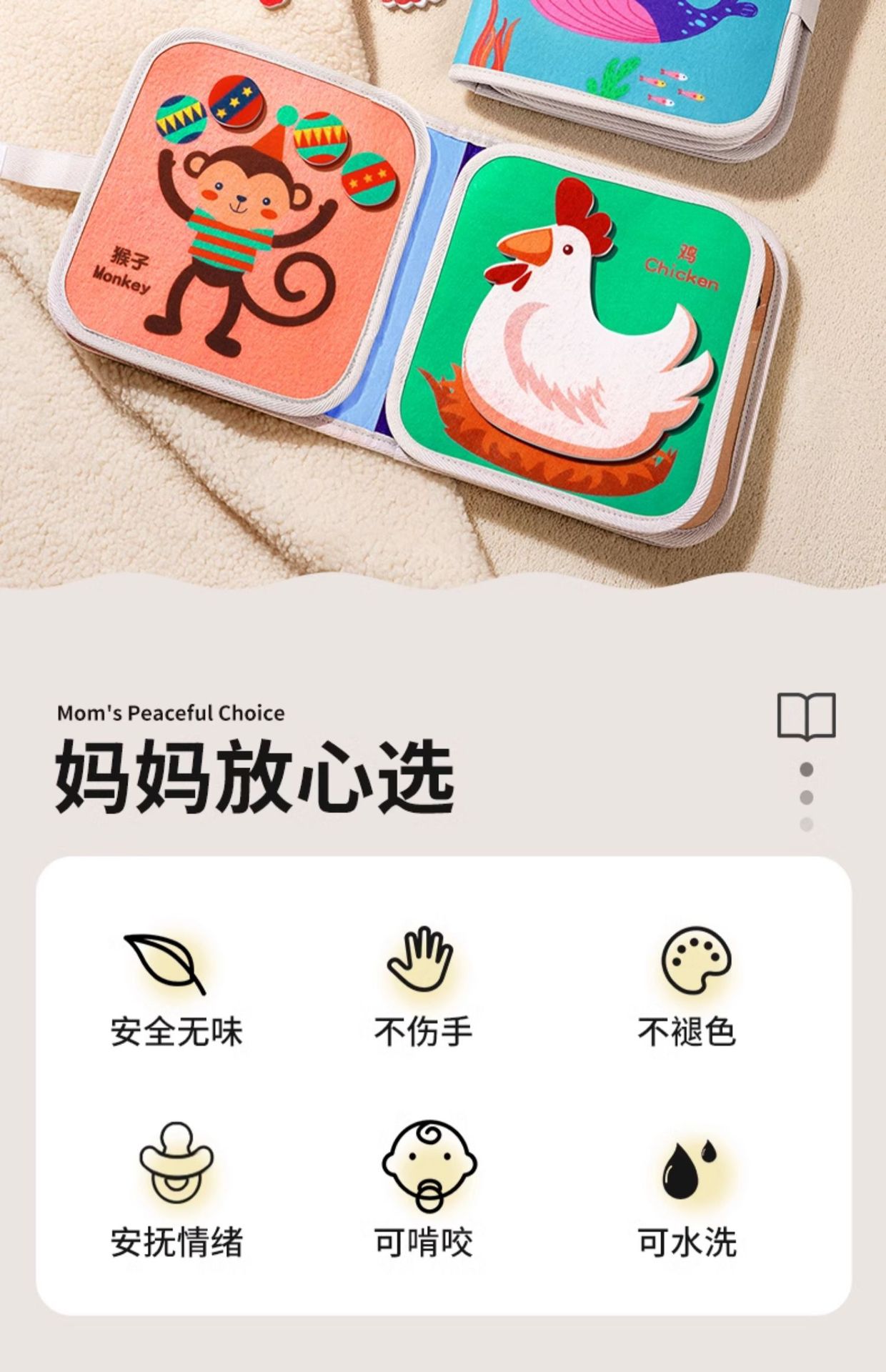 破れない赤ちゃんの静かな布の本モンテッソーリ早期教育赤ちゃんが噛んで破れる本ベルクロフェルト布のおもちゃ