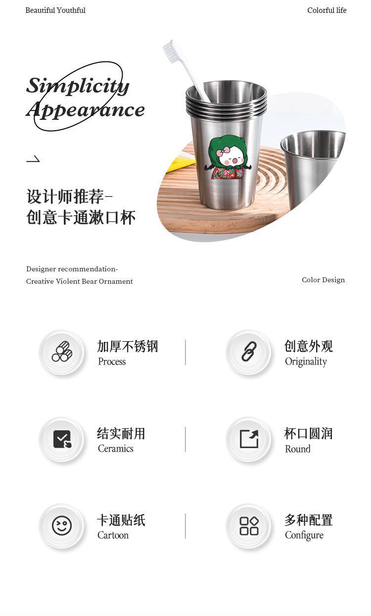 新しいアイデア家庭用ステンレスうがいコップブラッシングコップカップル歯ブラシコップ旅行うがいコップコップコップ口コップ