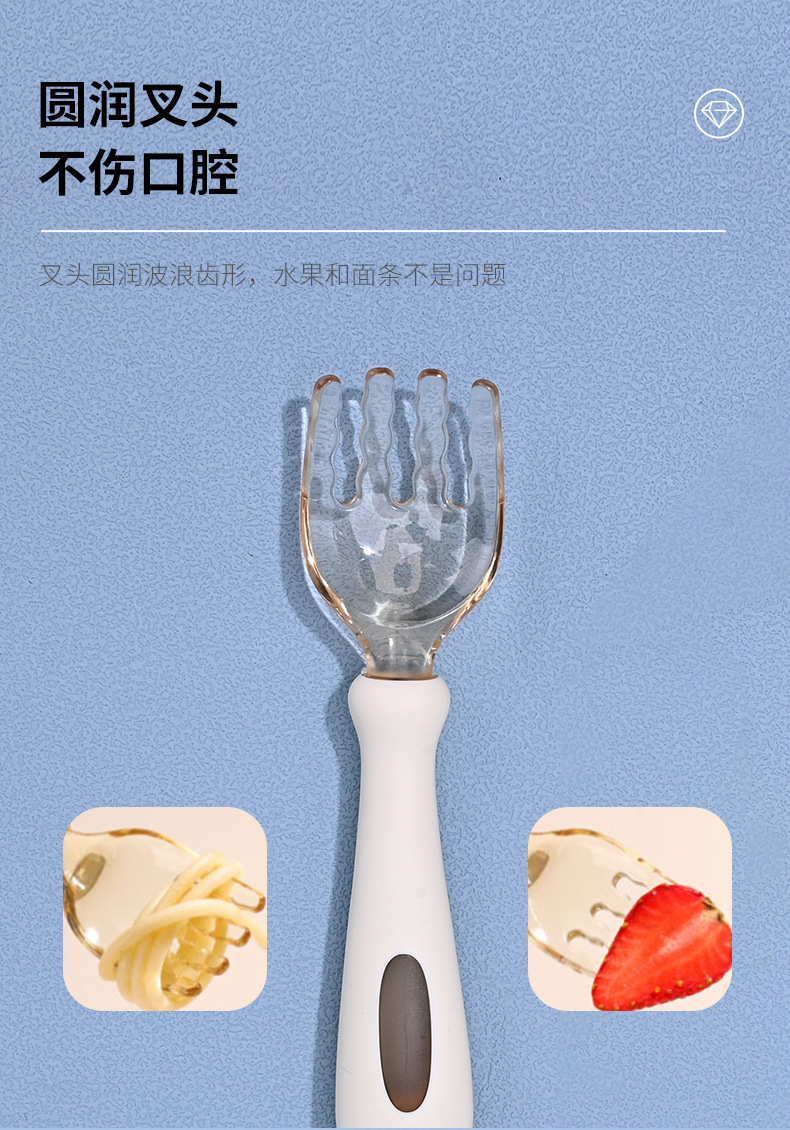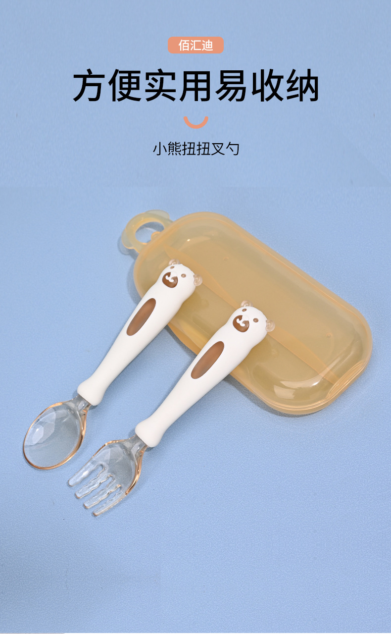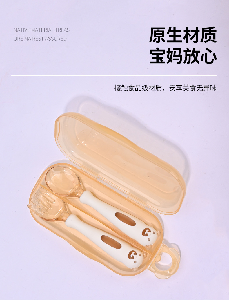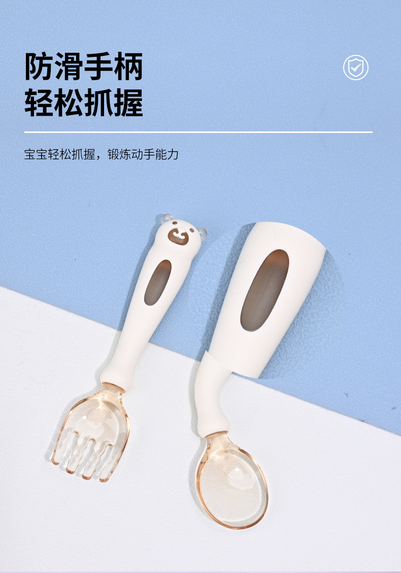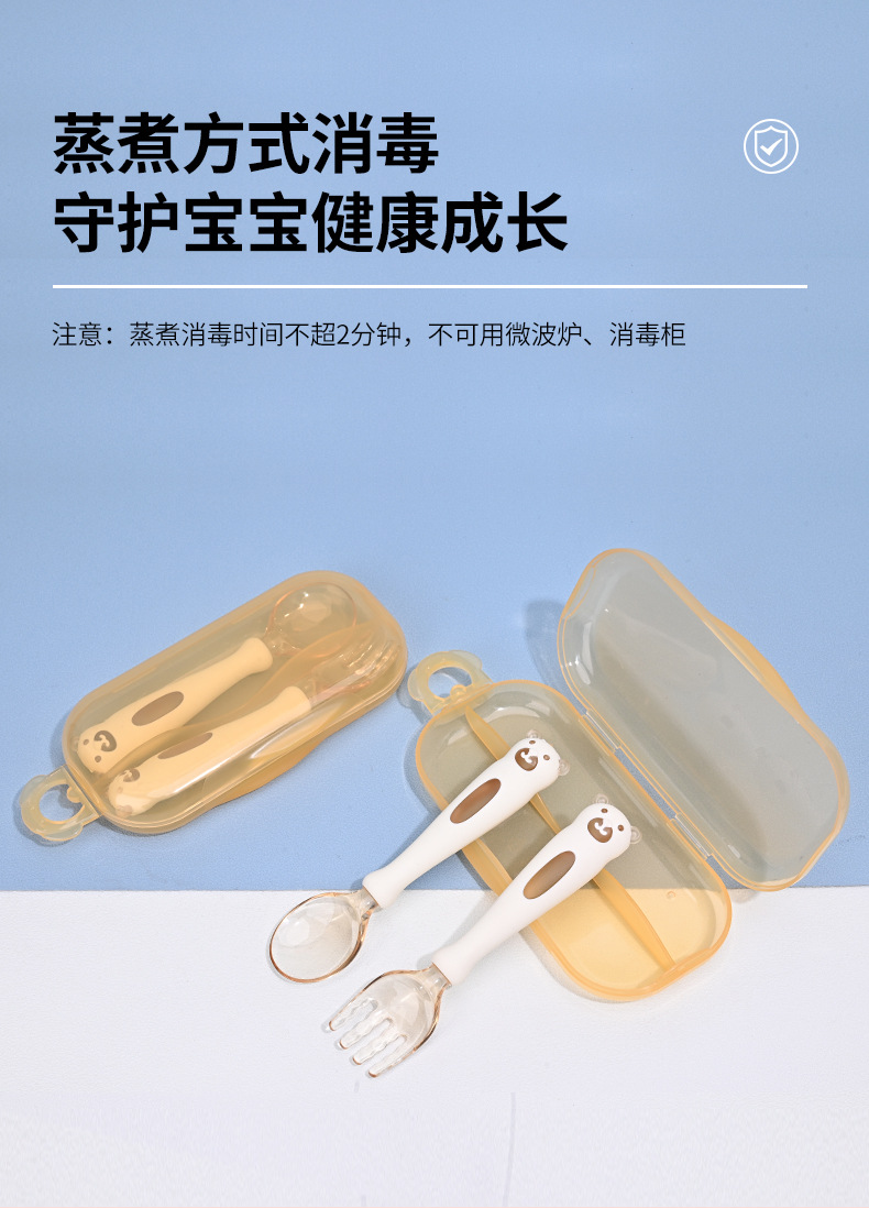 ベビースプーン赤ちゃんは食事を習ってフォークスプーンセットを食べます。