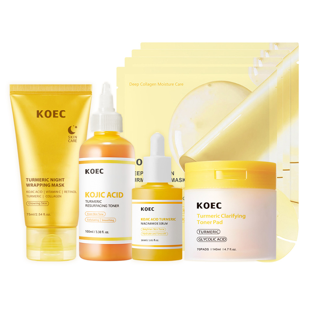 KOEC跨境曲酸姜黄面部身体护肤套装爽肤水+撕拉面膜+精华液+棉片
