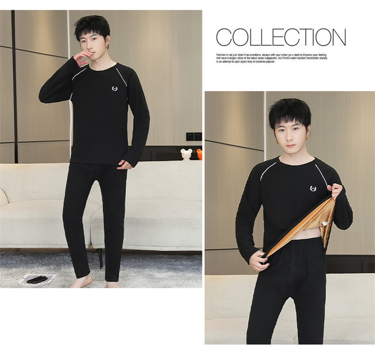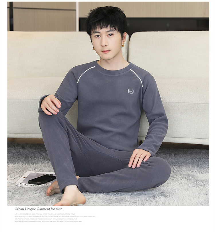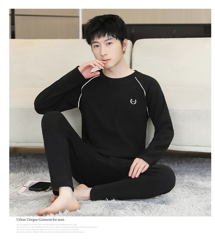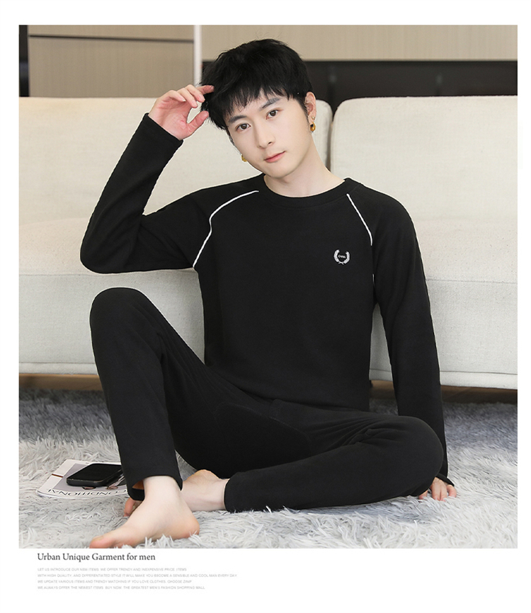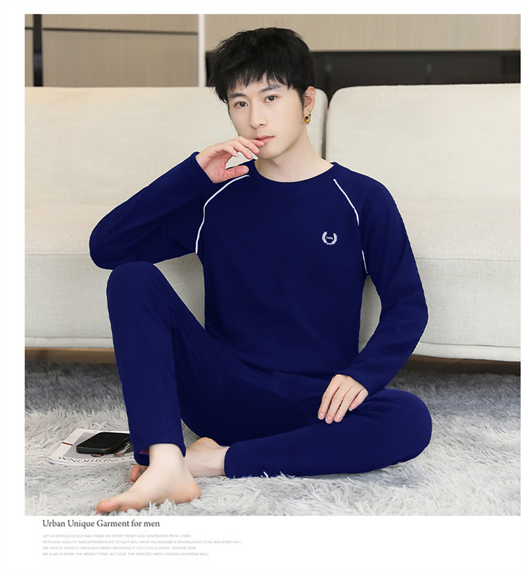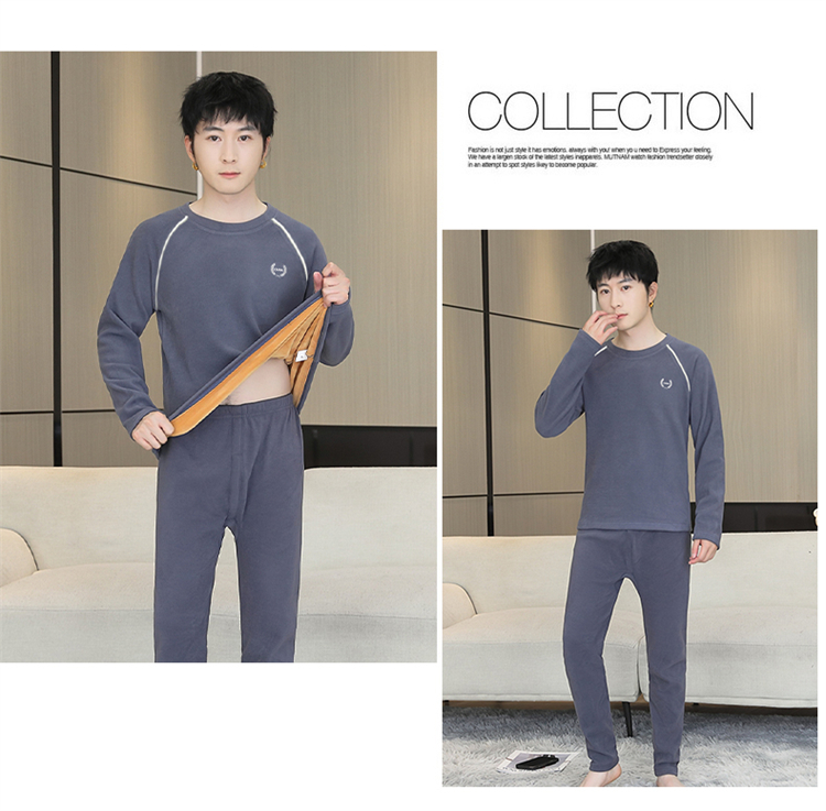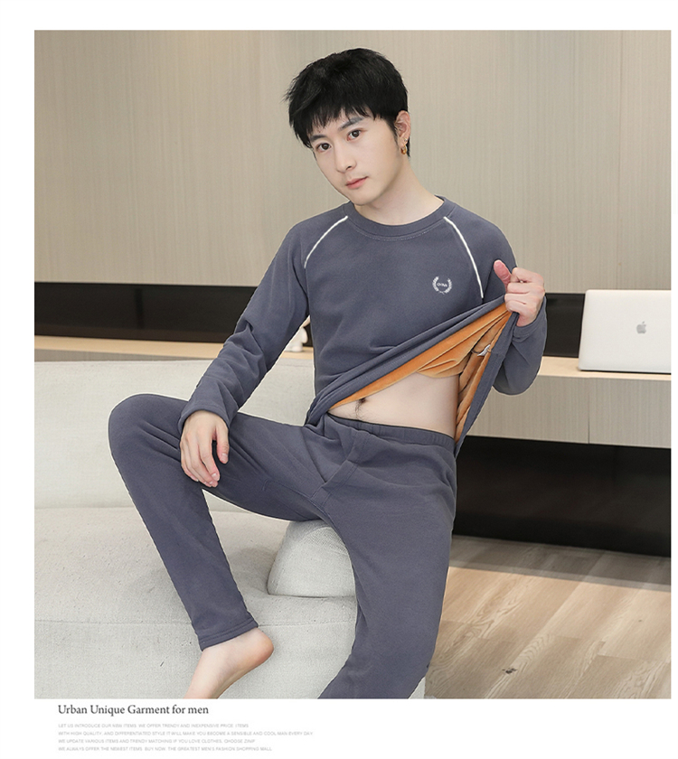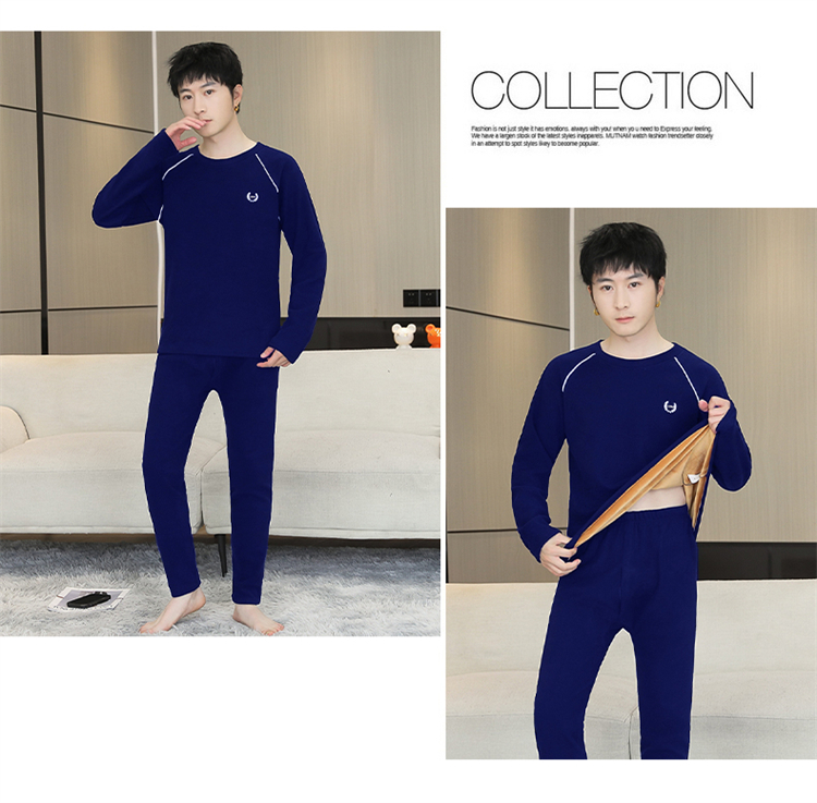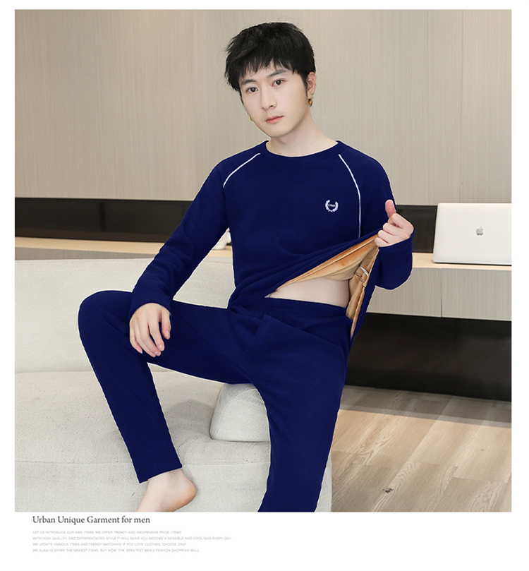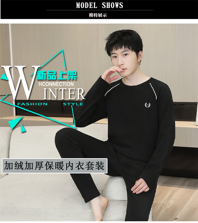 青少年学生保暖内衣男套装加厚加绒秋冬男士打底秋衣秋裤时尚套装