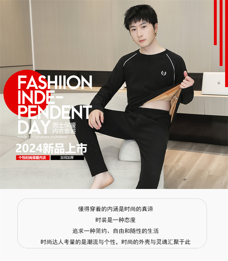 2024新型ビジネス徳絨秋衣秋ズボン加毛保温下着男性スーツ
