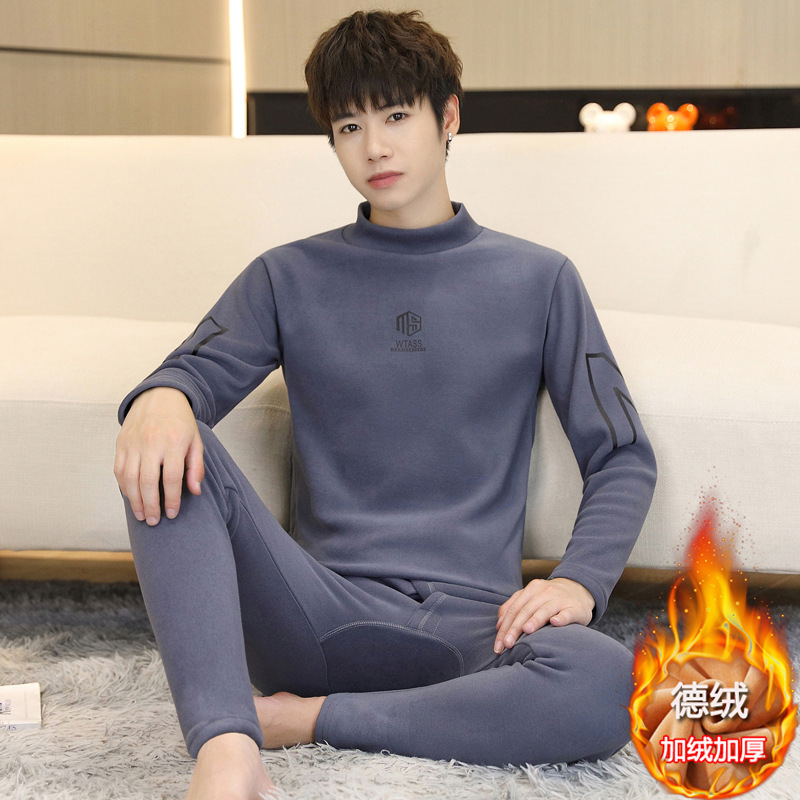 徳パイル保温下着男性半高襟無痕厚さ秋衣秋ズボン青年発熱徳容打底スーツ男