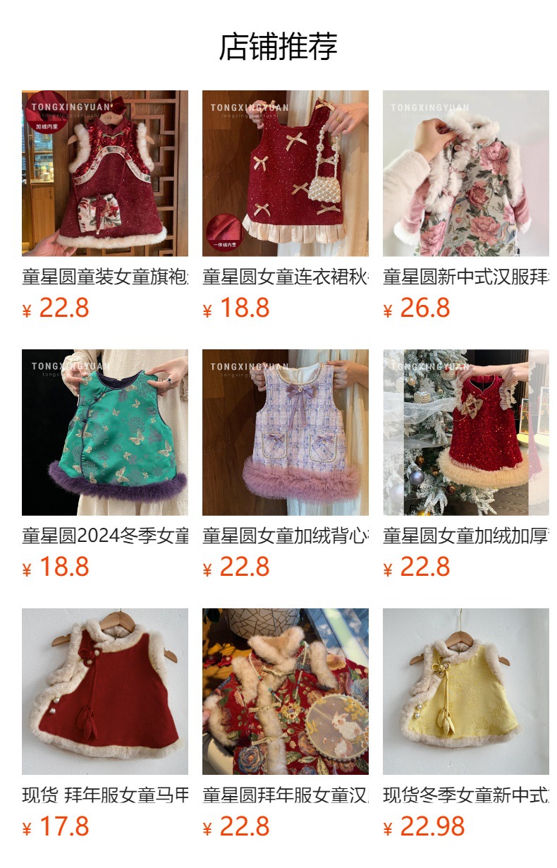 童星圆拜年服女童加绒旗袍裙冬2026新款儿童新款女宝宝旗袍裙套装