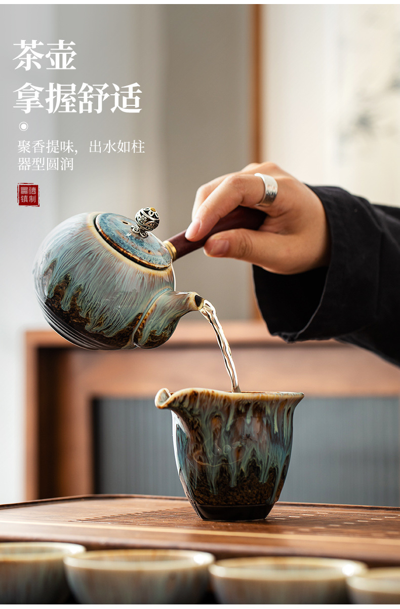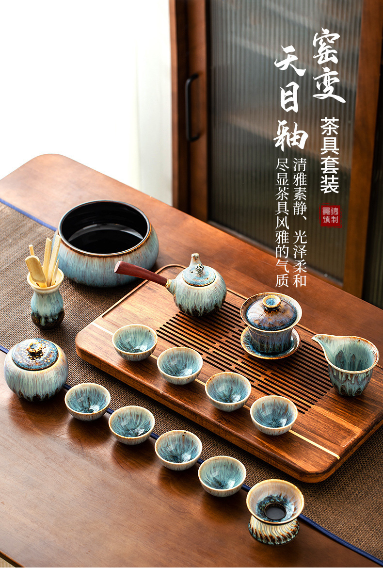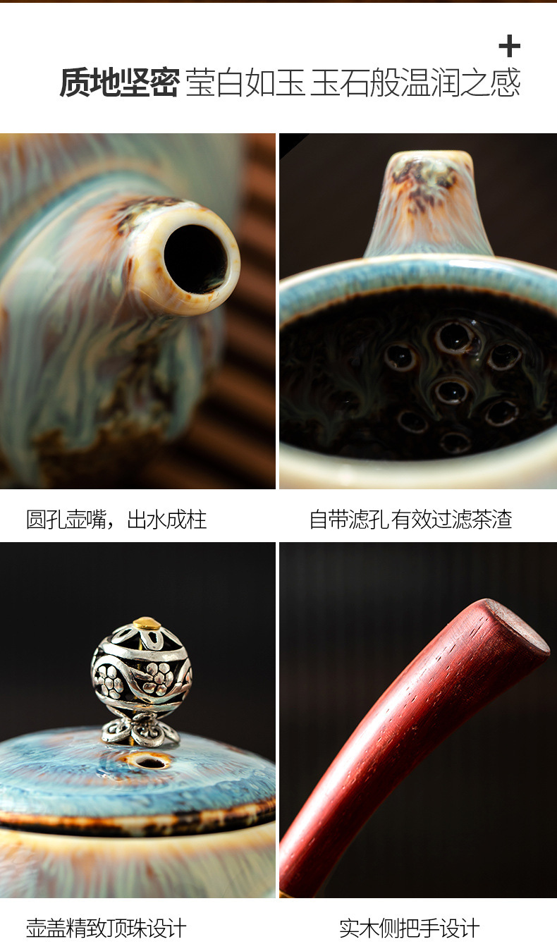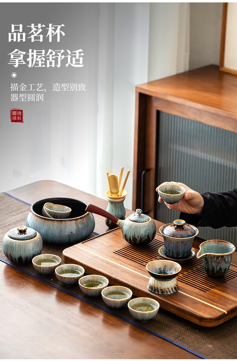 景徳鎮窯変工夫茶器セット家庭用天目釉薬事務室の接客陶磁器側はティーポットを入れます。