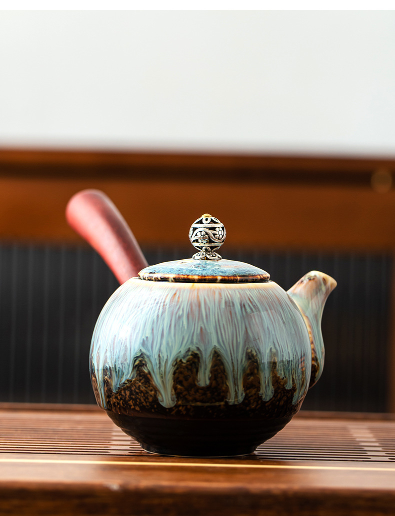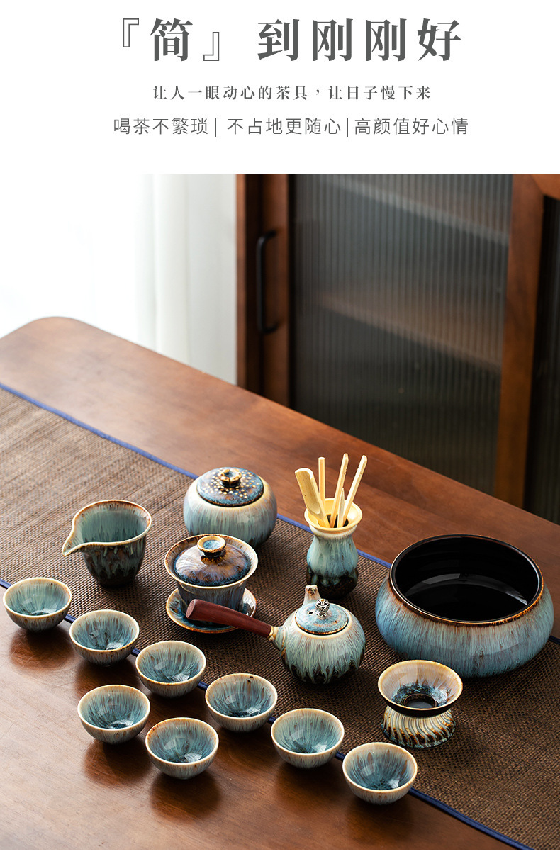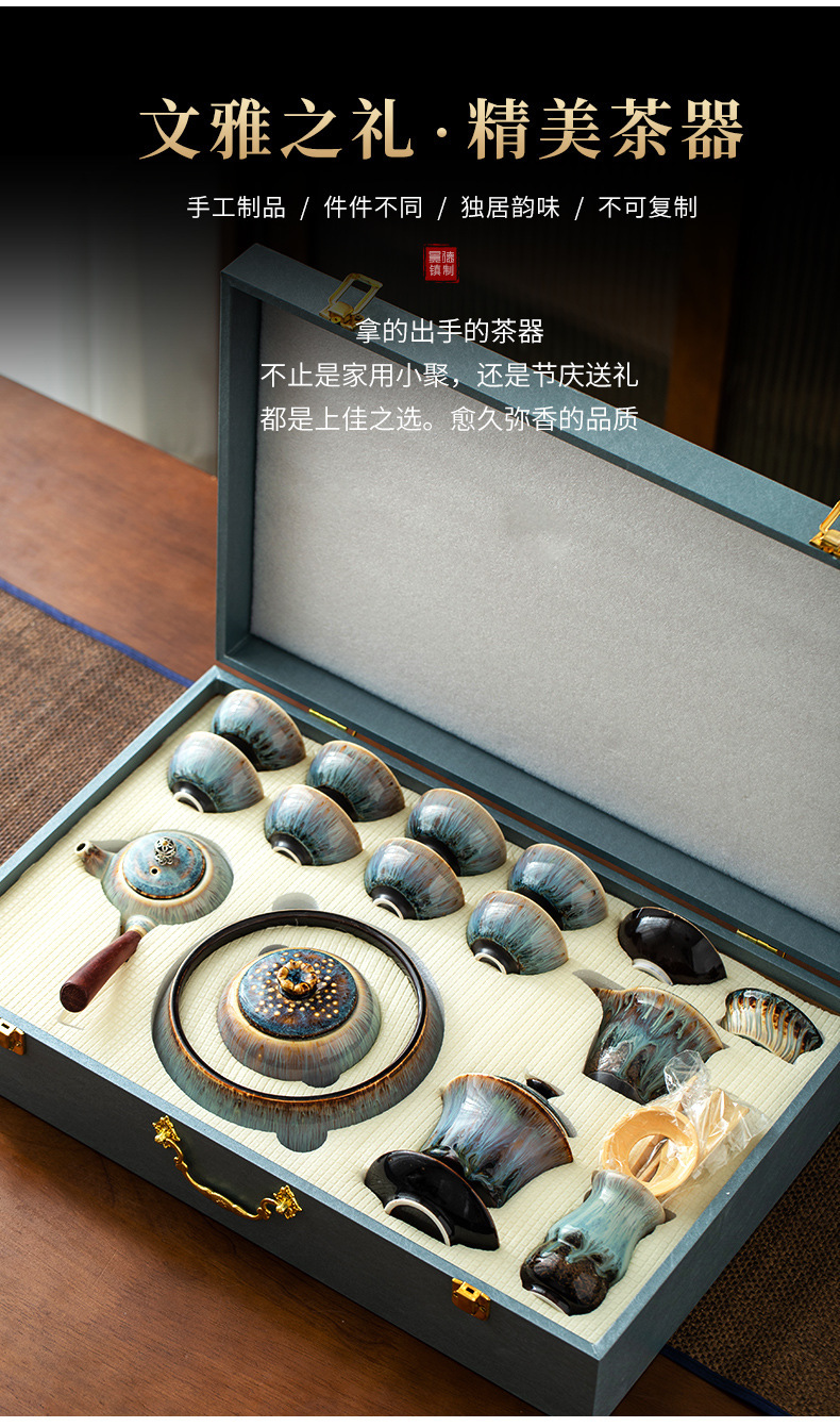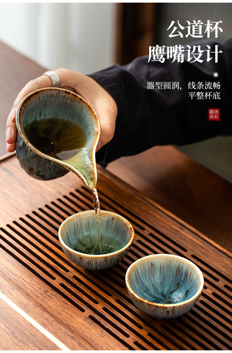 景徳鎮窯変工夫茶器セット家庭用天目釉薬事務室の接客陶磁器側はティーポットを入れます。