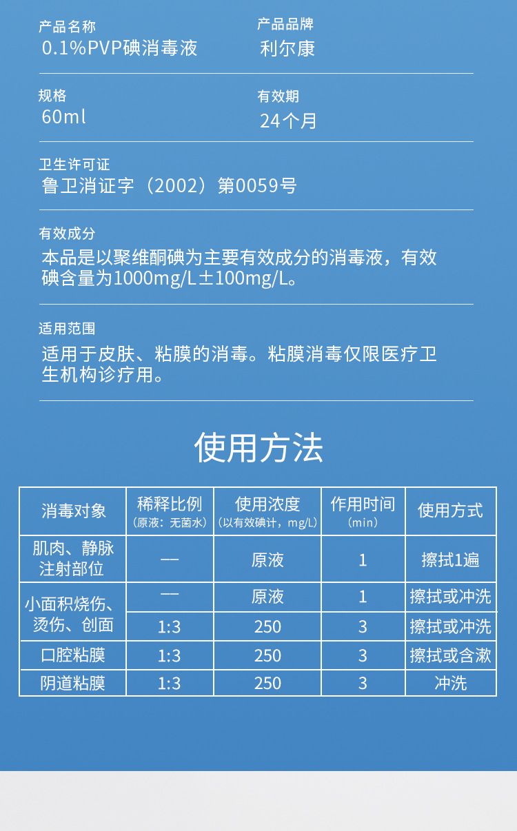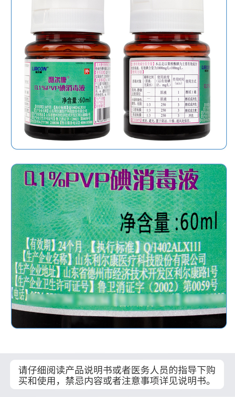 利爾康0.1% PVPヨウ素ボルト消毒液病院診療所家庭用乳児皮膚粘膜消毒殺菌60ml