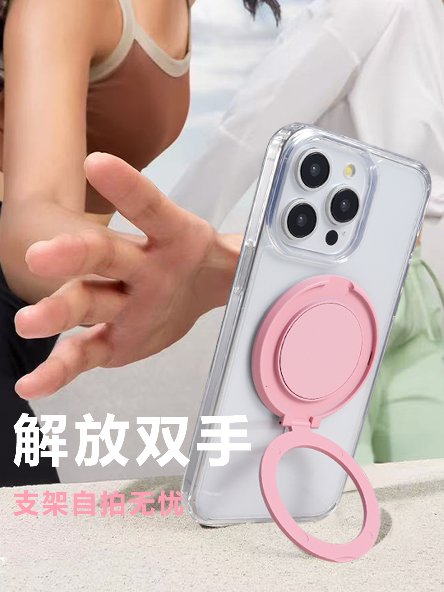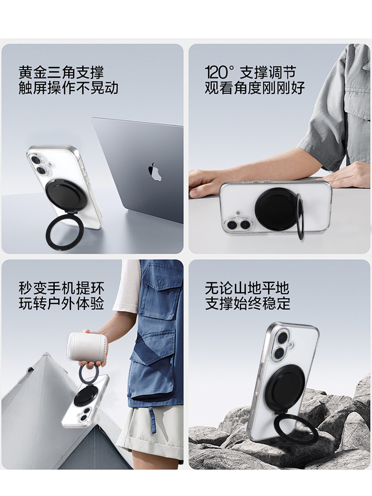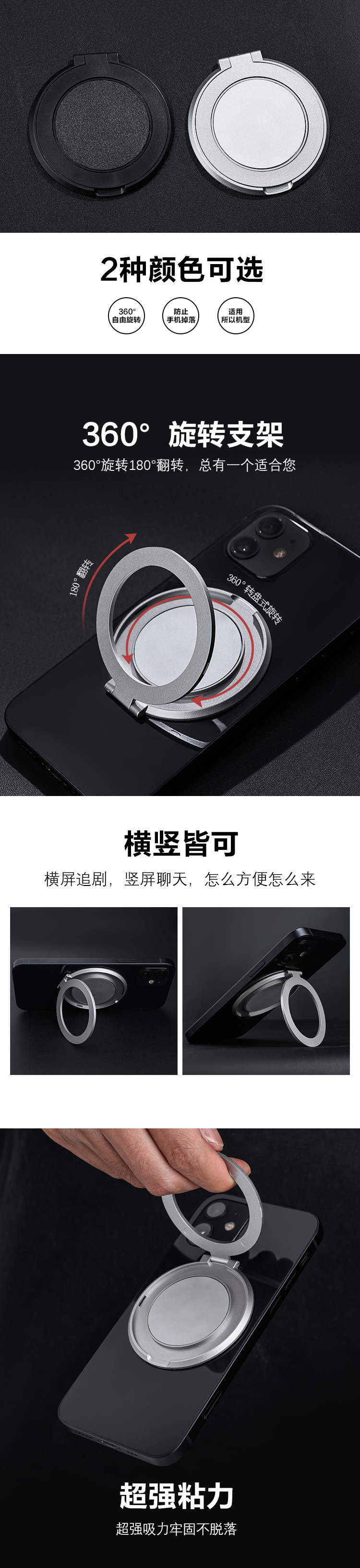 リング付きスマホケーススタンド 超薄型デスクトップスタンド 背面貼り付けリングロゴ入り マグネット式スタンド モバイルバッテリースタンド