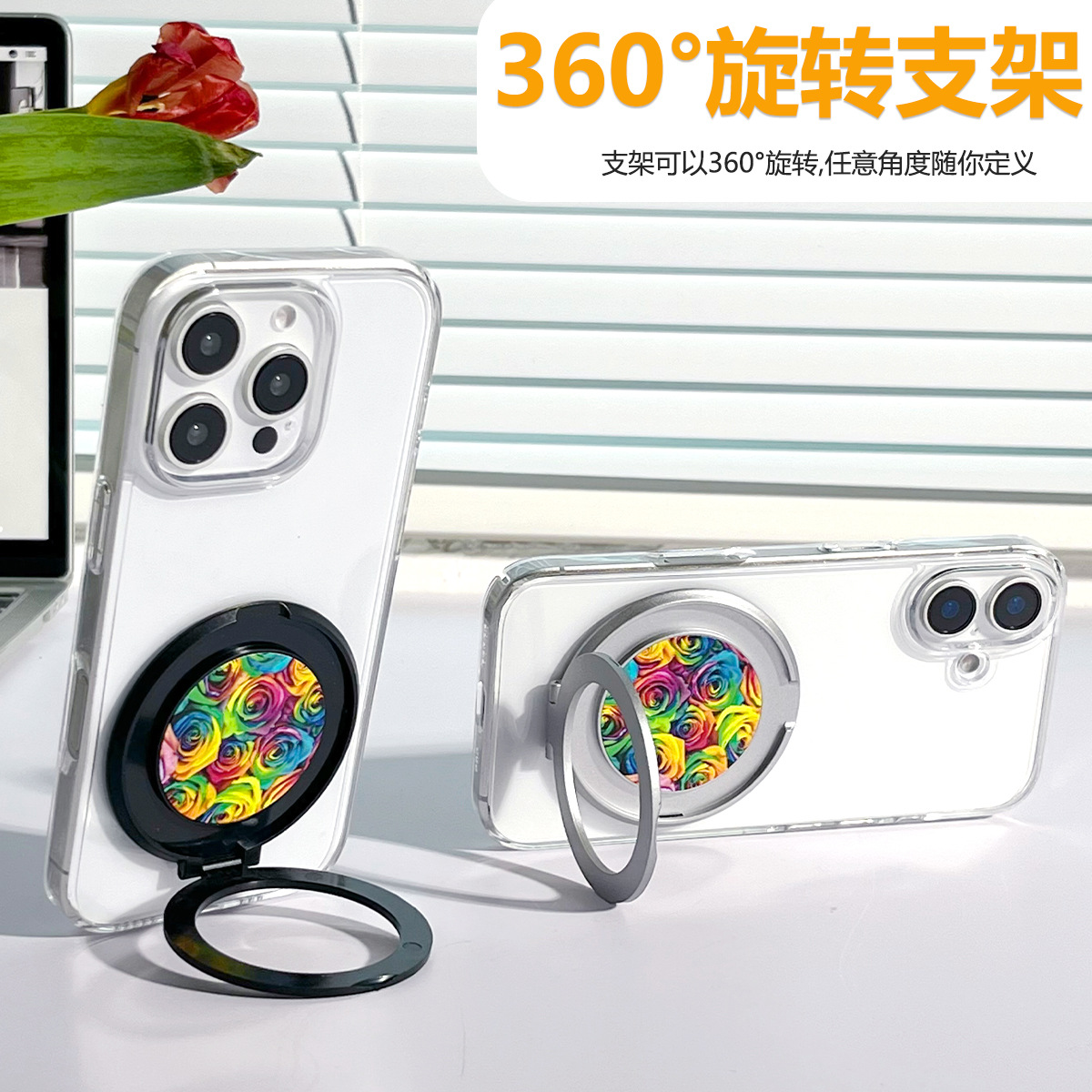 多機能携帯電話リングバックルブラケットバックステッカー携帯電話ケースブラケット落下防止金属回転リングデスクトップブラケット