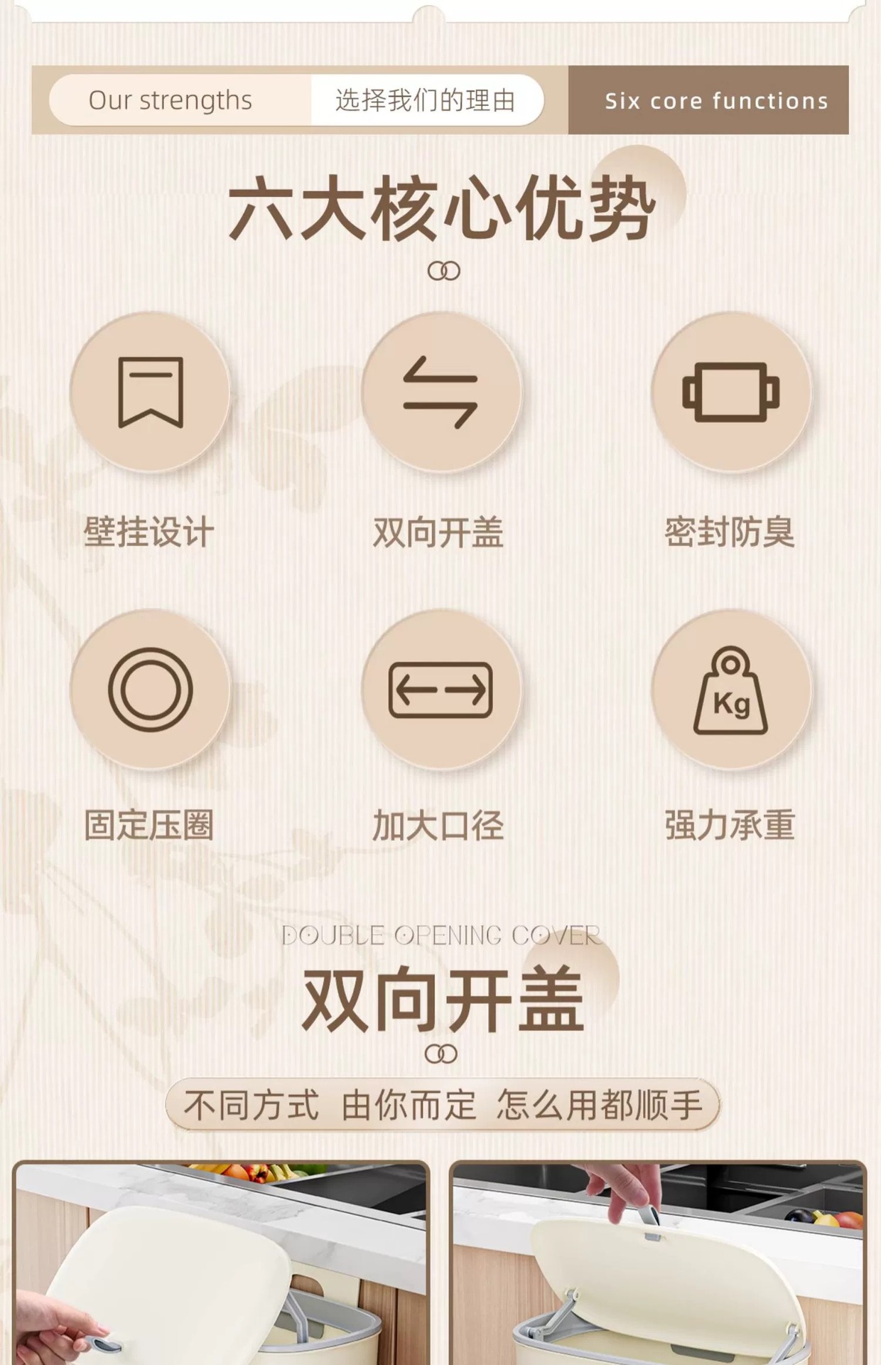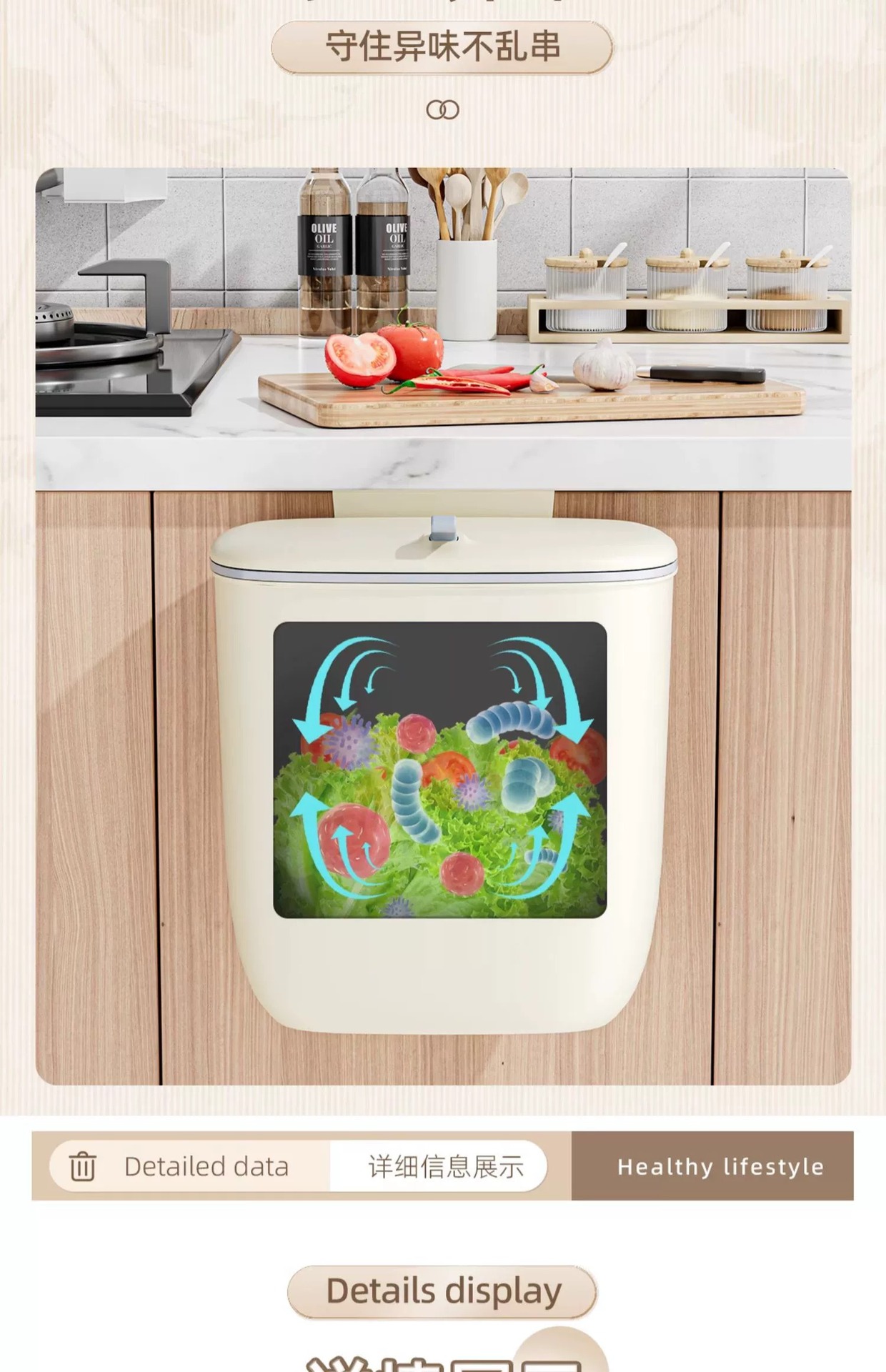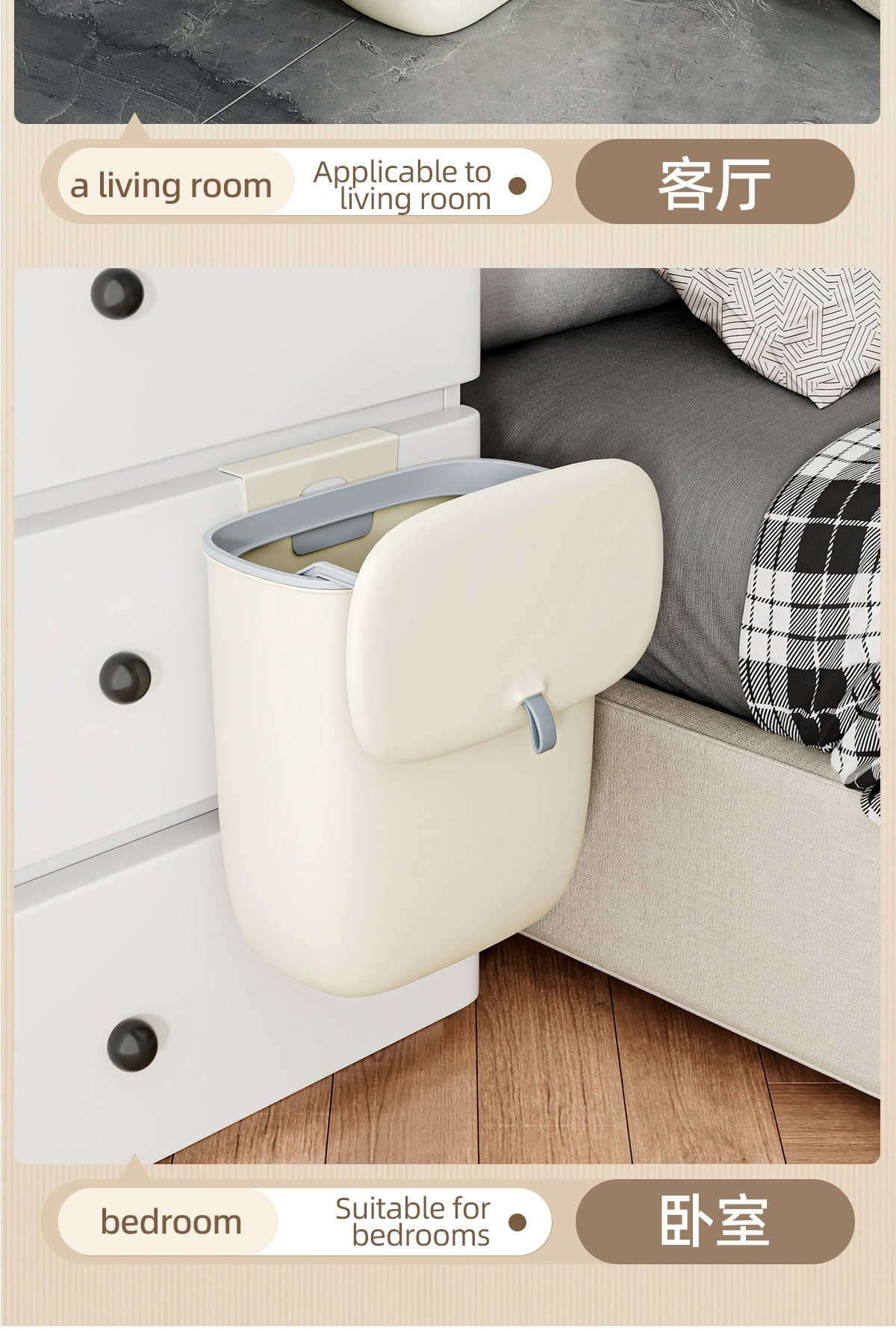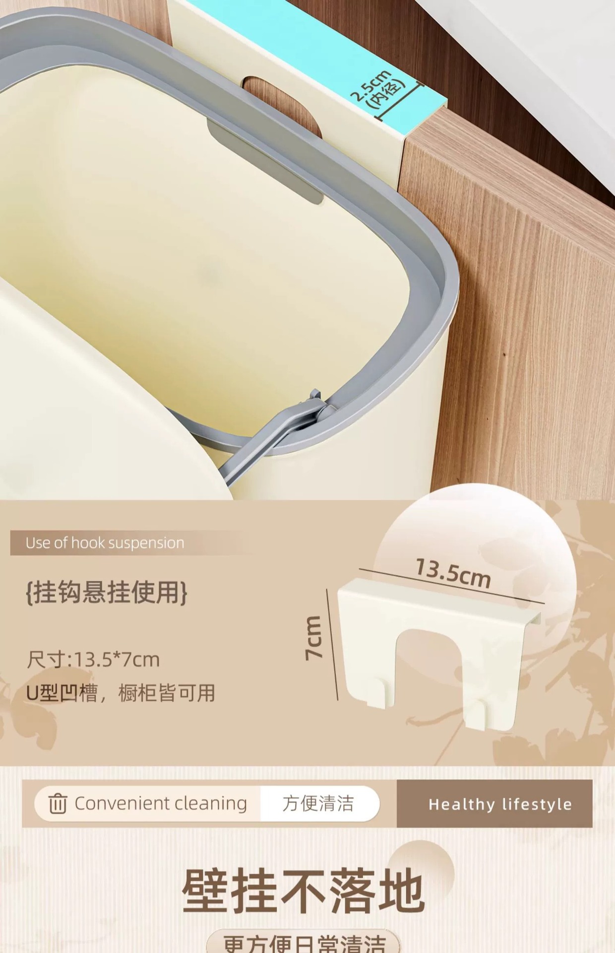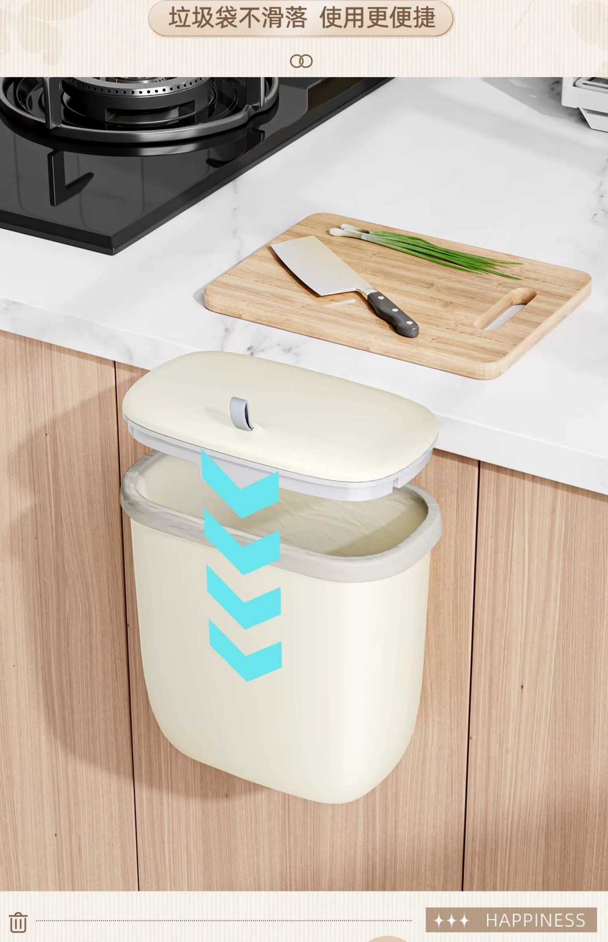 垃圾桶家用厨房免打孔壁挂式免弯腰带盖橱柜门厨余杂物桶纸篓跨境