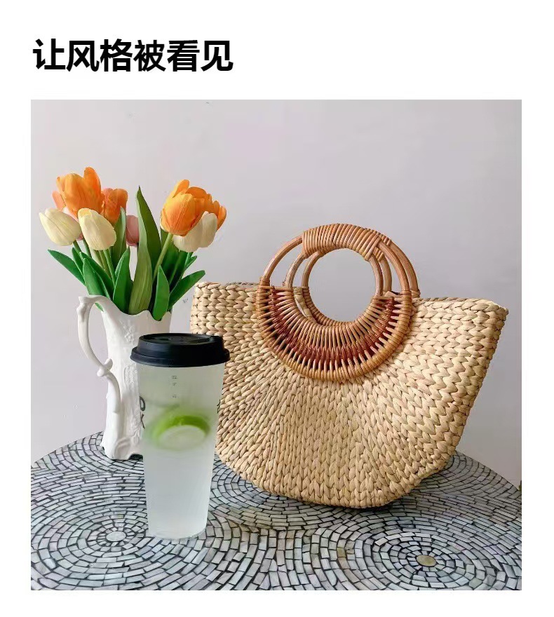 跨境热卖田园风菜篮子草编包半圆编织包手提包休闲度假沙滩包