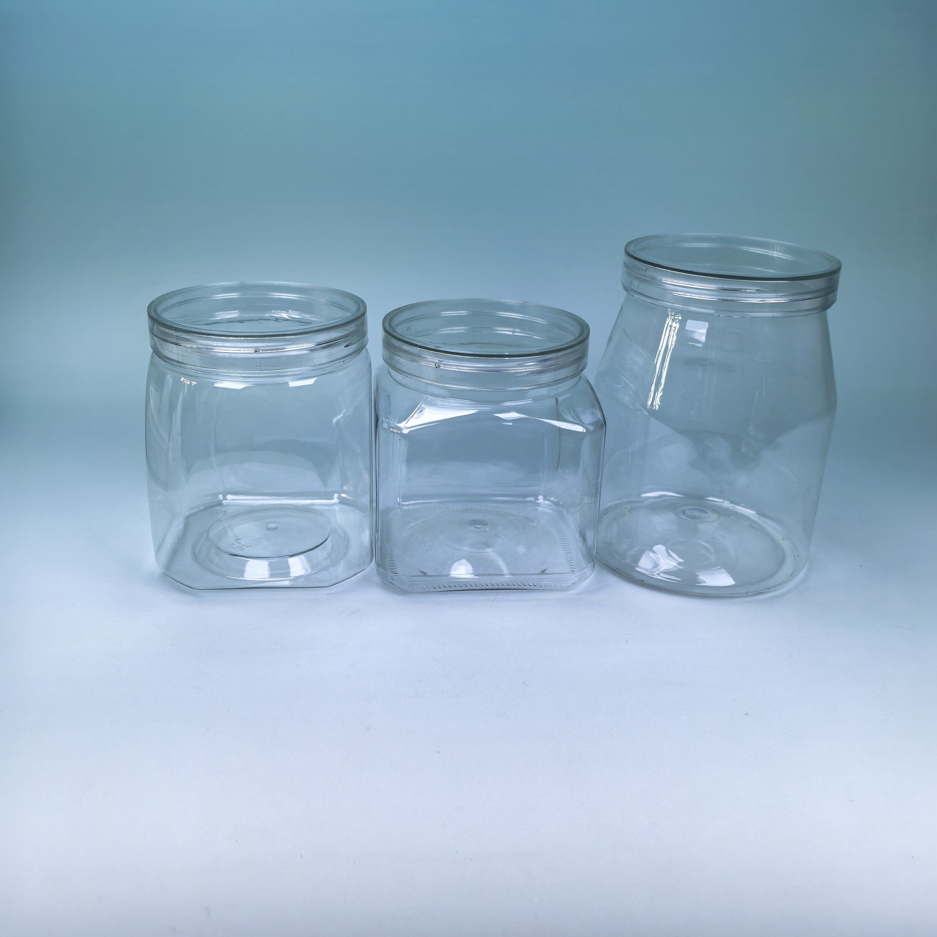 アルミ蓋付き透明プラスチック瓶、在庫あり卸売販売、貯蔵瓶、雑穀、ナッツ、スナック、蜂蜜密封瓶、PET広口瓶
