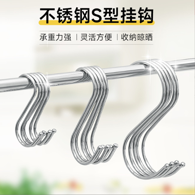 ステンレスフック家庭用s型フックキッチンナイフホルダーフック浴室物置棚小フック穴板平鋼フックs