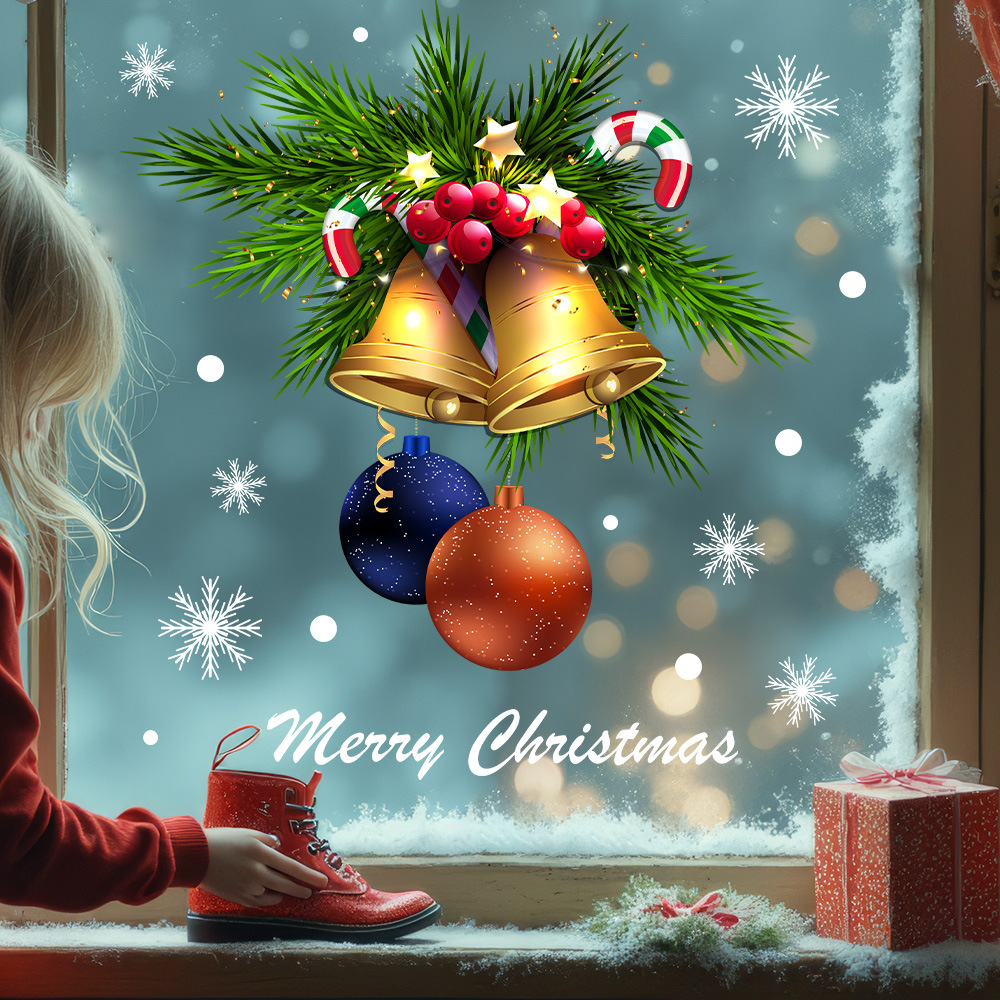 愛客jd 3362クリスマス鈴彩卵誘拐棒祭り窓貼りリビングガラスドアと窓装飾静電貼り