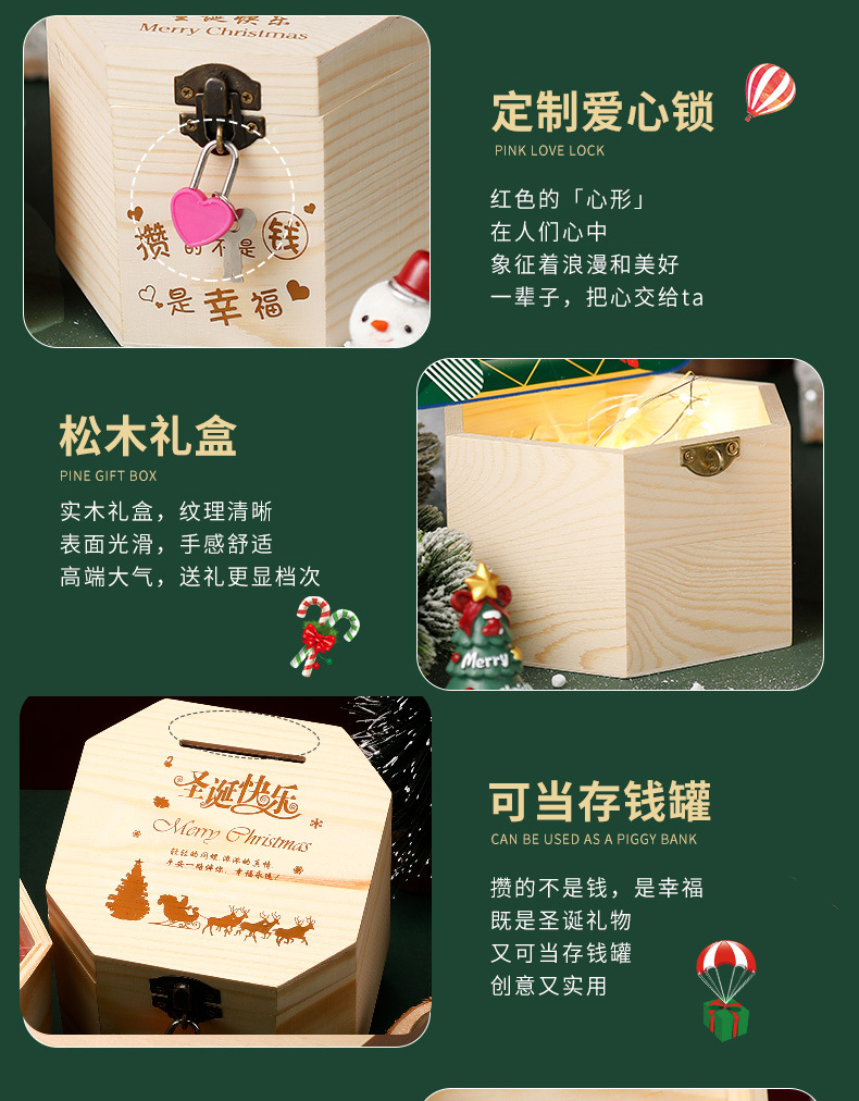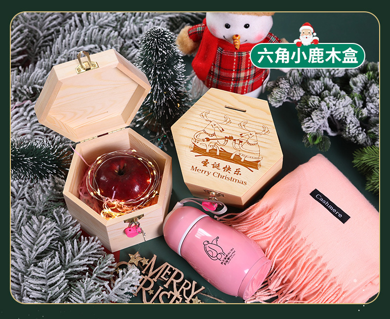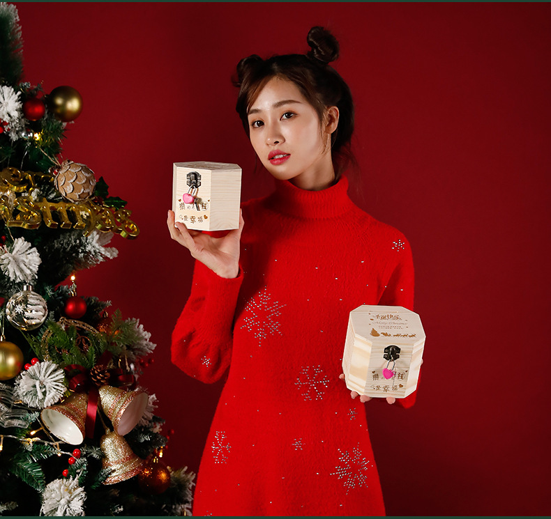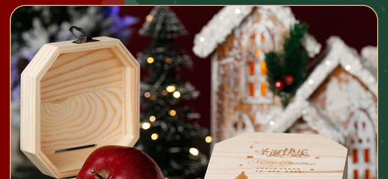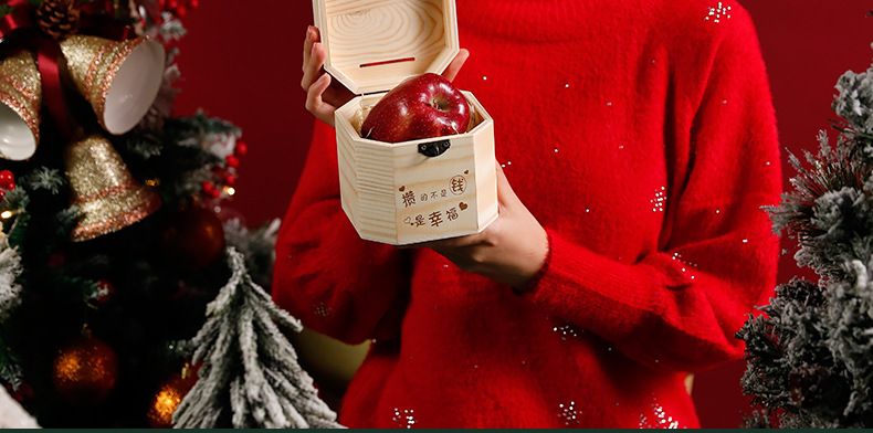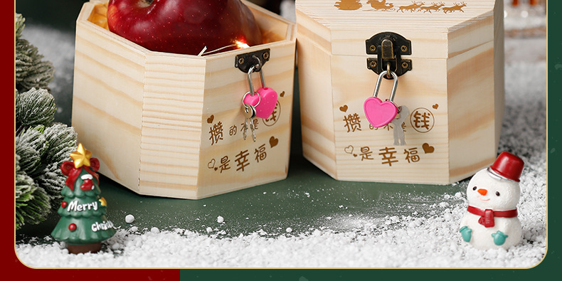 木のクリスマスのリンゴの収納箱のクリスマスイブの手のプレゼントの箱のキャンディーの収納箱のふたをひっくり返して式の貯金箱の木の箱を貯金します。