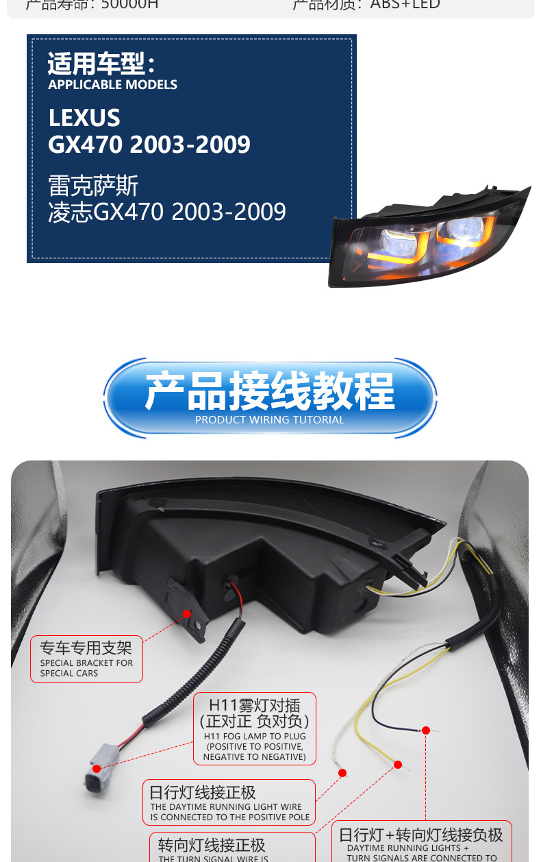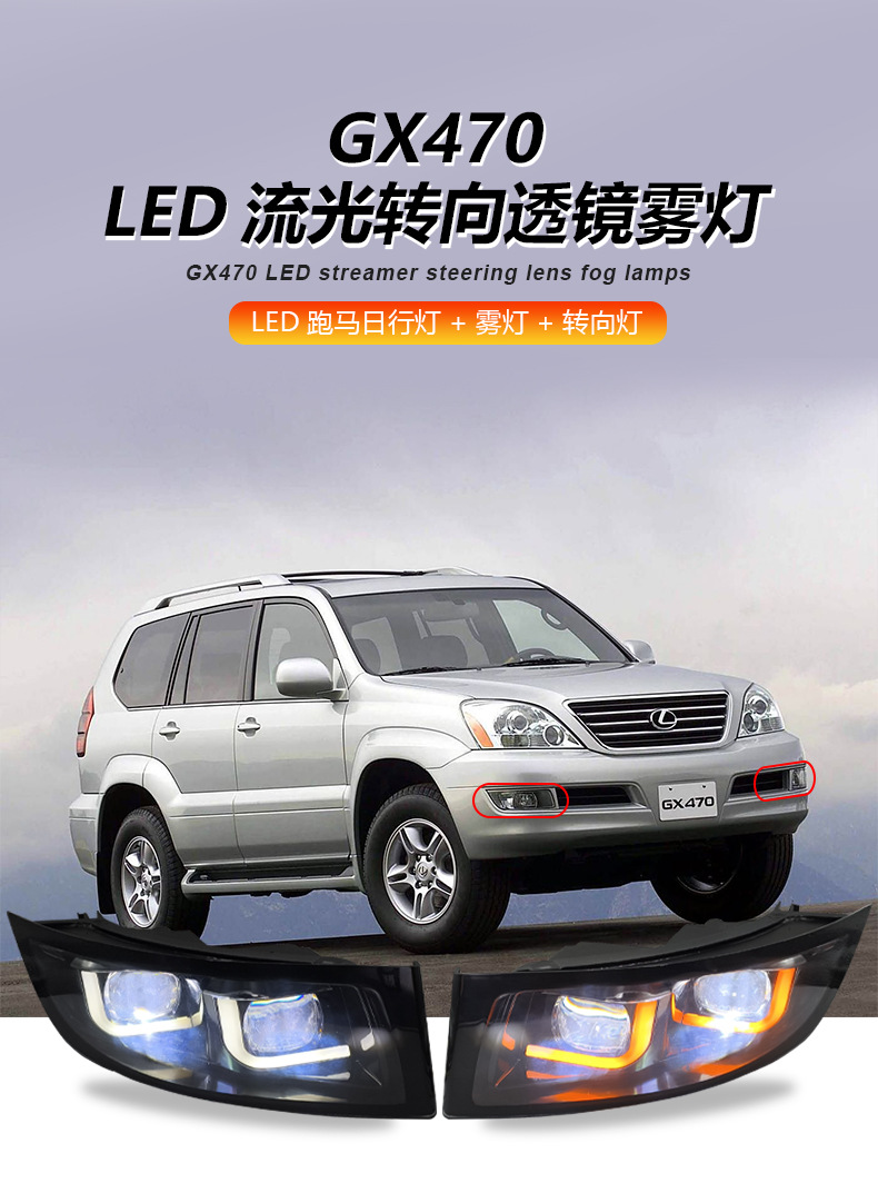LEXUS凌志レクサス凌志GX470レンズフォグランプLEDターンライトデイライト03-09に適用