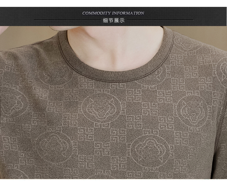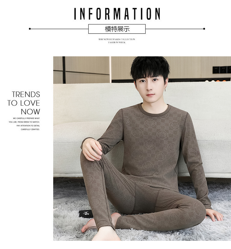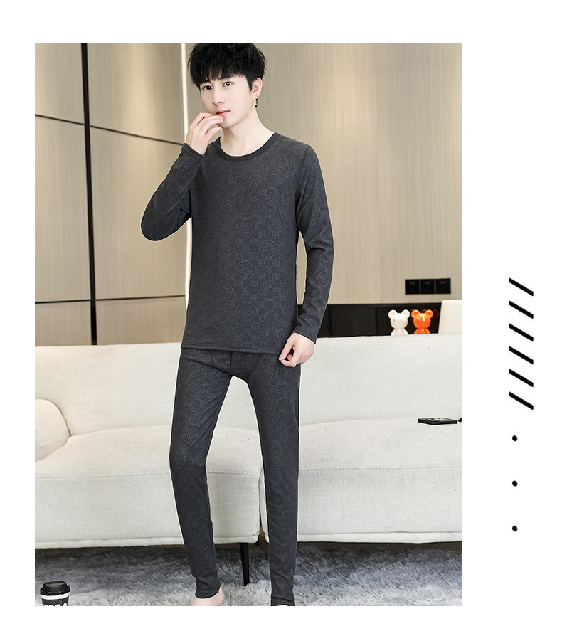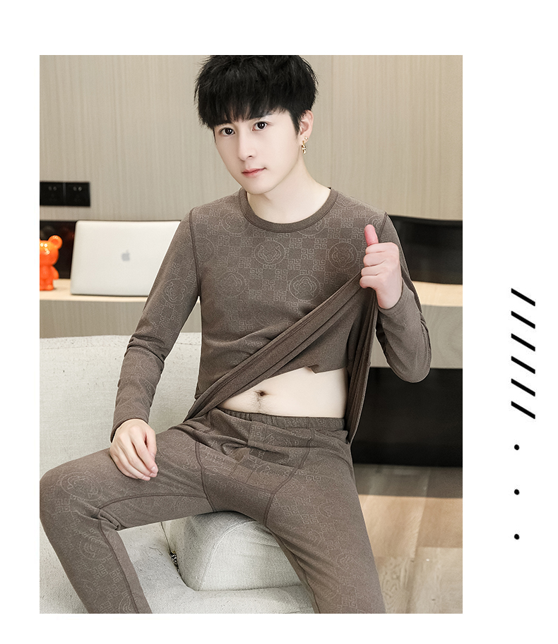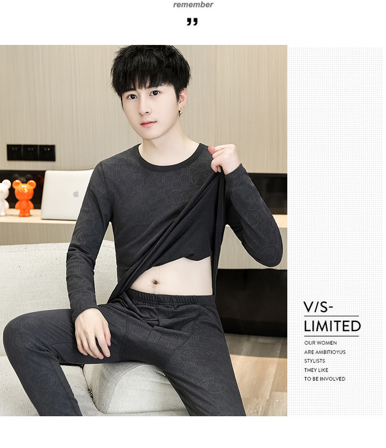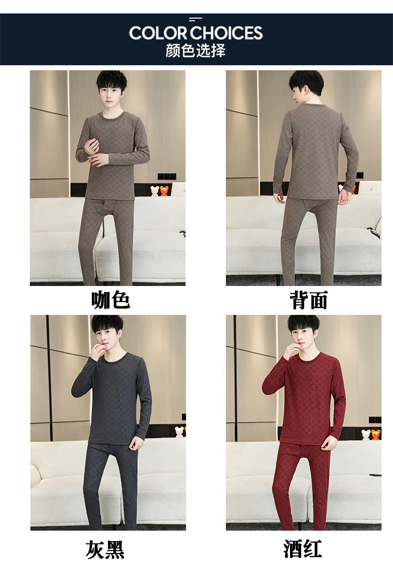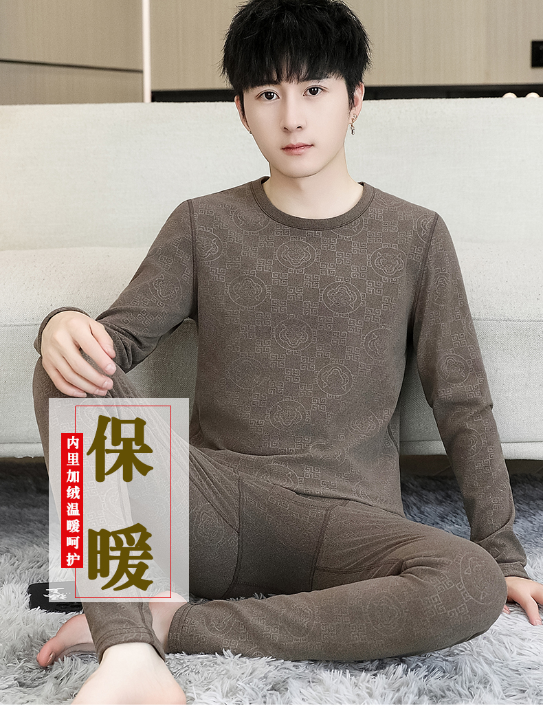 男性用保温下着セット徳絨毛発熱肌着低襟下地青年成人加毛薄い秋衣秋ズボン