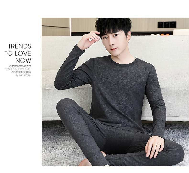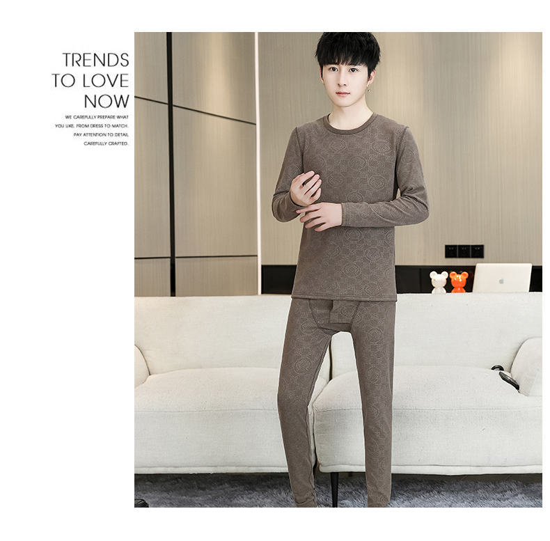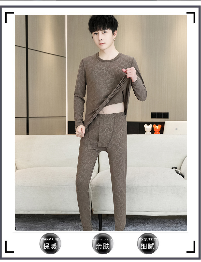 徳絨毛保温下着男性セット2024新型青少年高校大学生ベルベットダウン秋衣秋ズボン