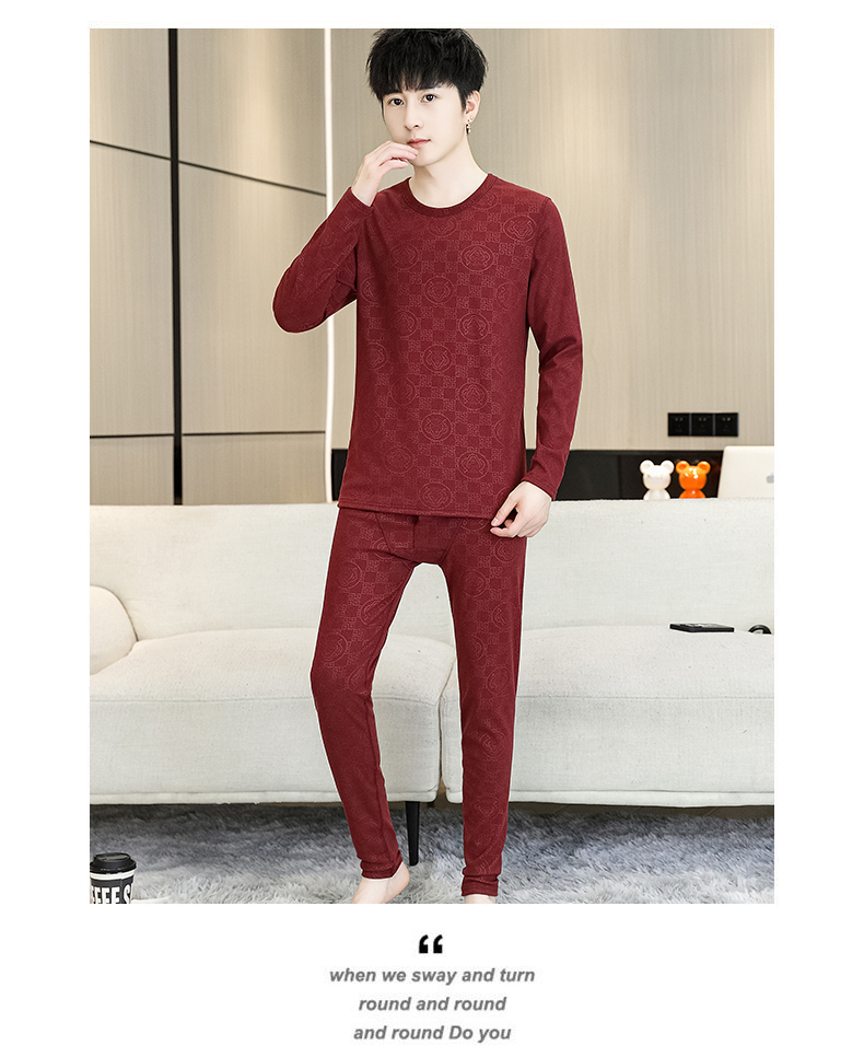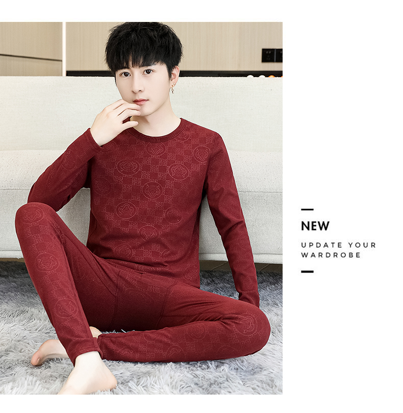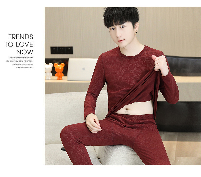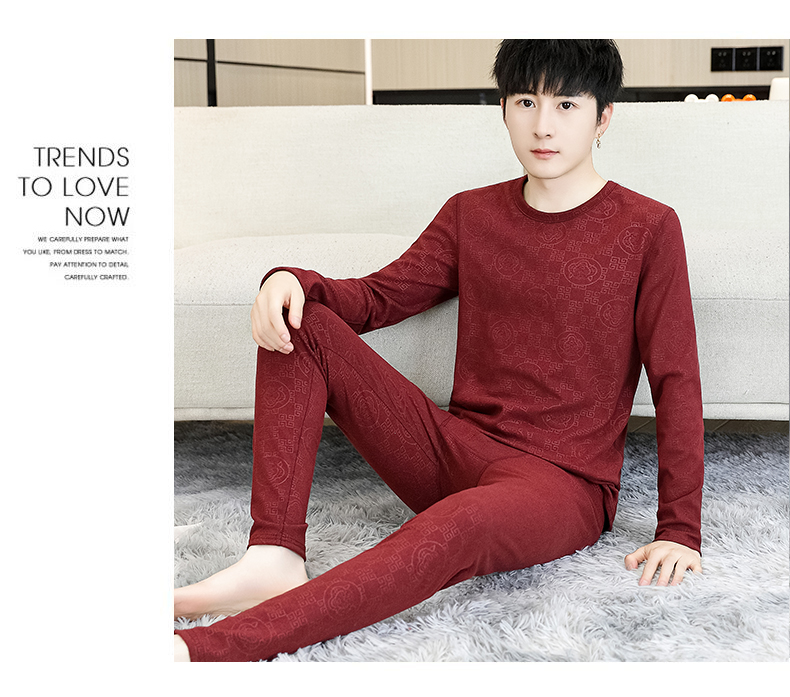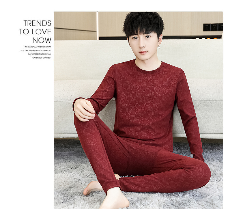 本命年の赤いベルベットの発熱に痕跡のない保温下着セット男性の冬には、秋の服の秋のズボンを厚くする