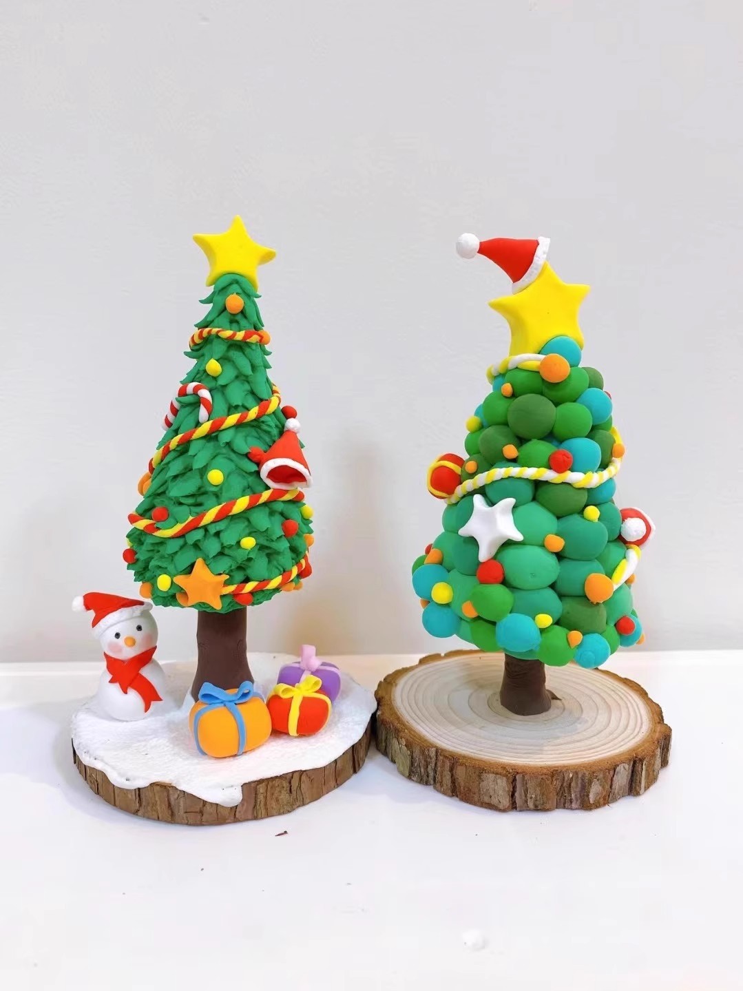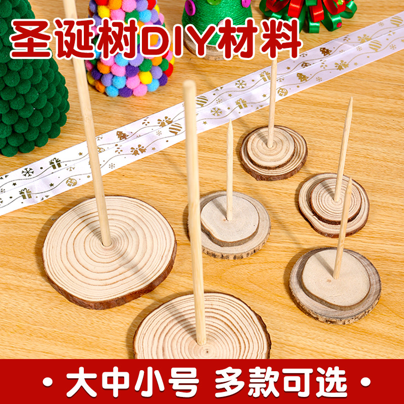 圣诞树底座diy材料包原木底托底盘打孔送松果扭扭棒粘土圣诞装饰