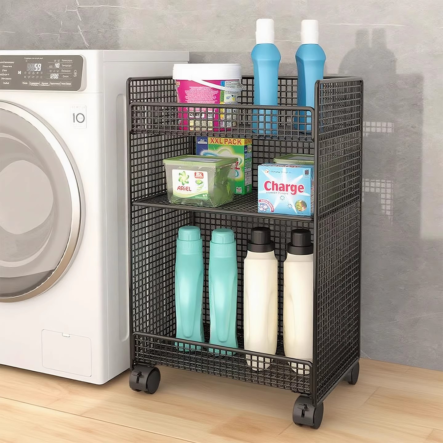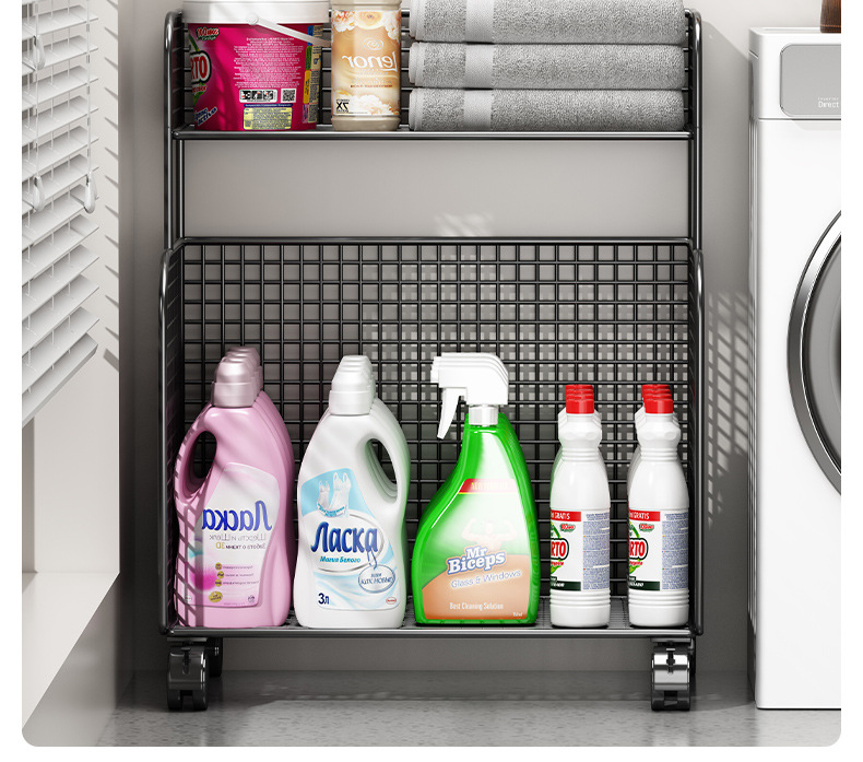 トイレ用物置棚浴室用トイレ収納神器洗濯機の床に落ちた洗濯液収納棚のカート