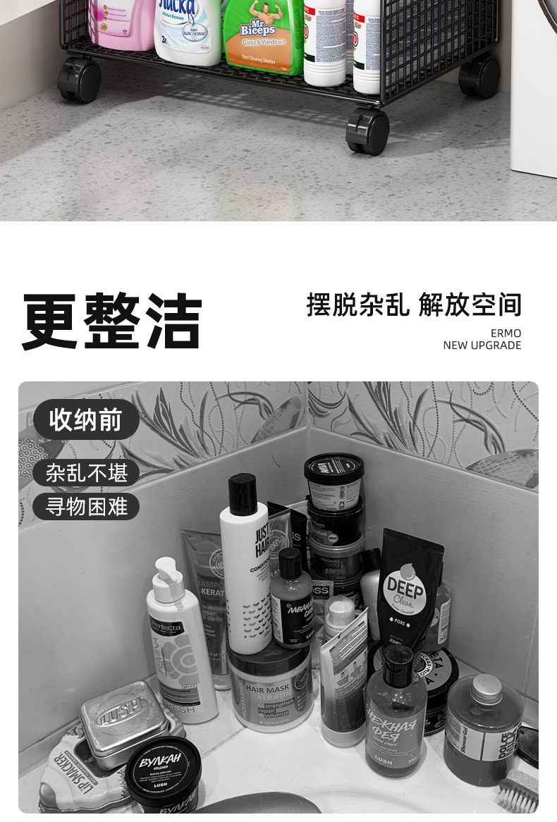 浴室储物柜落地小推车厕所防水卫生间置物架放洗衣液整理收纳架子