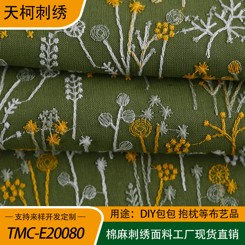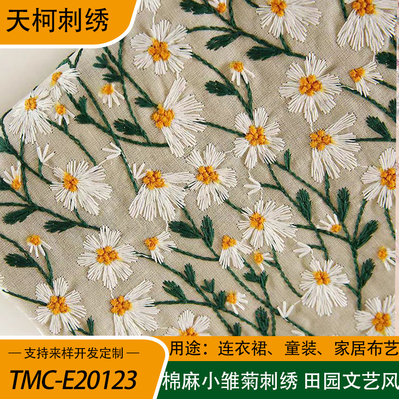 ラミー麻綿小デイジー刺繍生地家庭布芸ワンピース刺繍生地田園手作りバッグ布生地