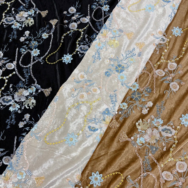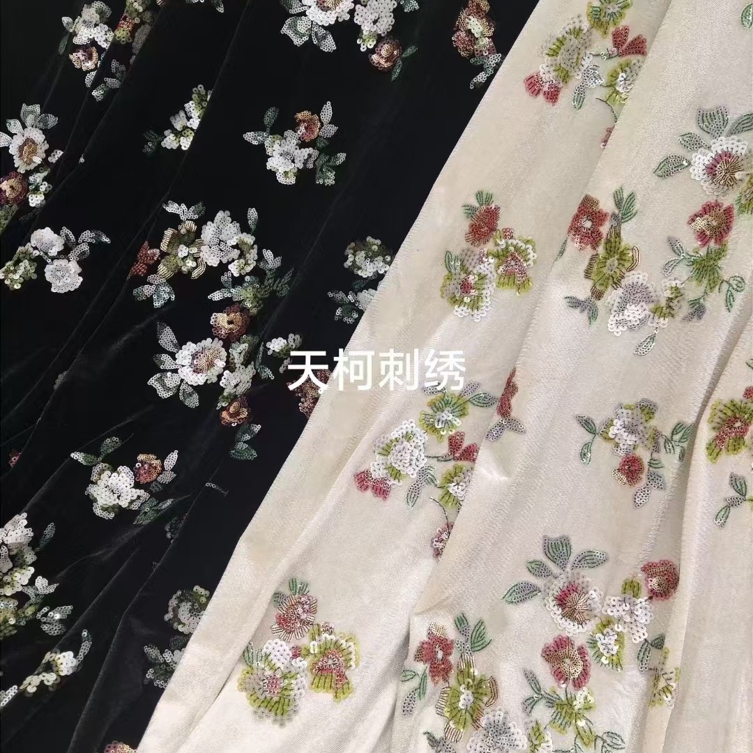 新款现货重工绣珠片刺绣布料时装箱包牛仔手提包亮片绣花面料