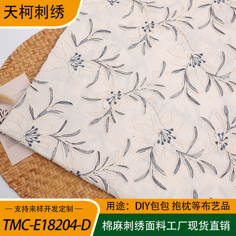 现货定制竹节棉立体刺绣面料女装连衣裙衬衫汉服箱包绣花布料
