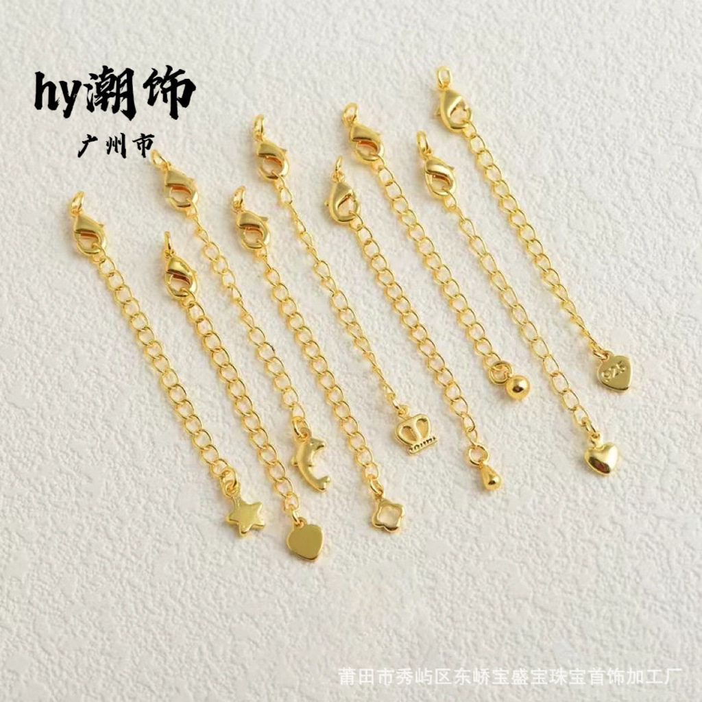 18k金14k金保色尾鎖延長鎖バネ付きロブスターパールネックレスブレスレット手作りdiyアクセサリー