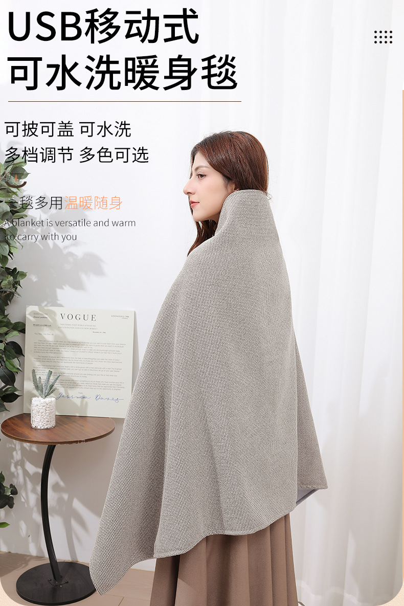 跨境热卖电热加热户外披肩usb充电盖毯办公室保暖暖身发热毛毯