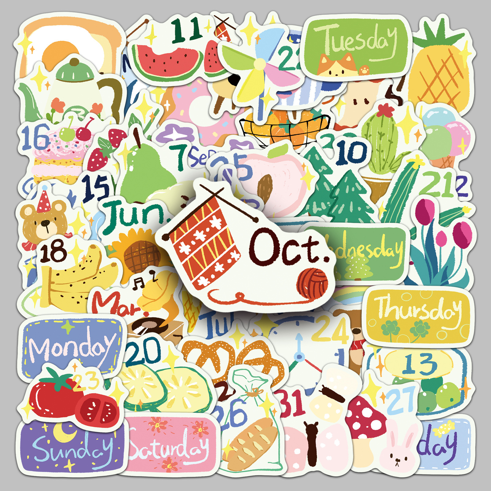 オリジナル日付ハンドブックステッカー50枚、手描きの非著作権油絵風ハンドブック、携帯電話ケース、ノートブックステッカー